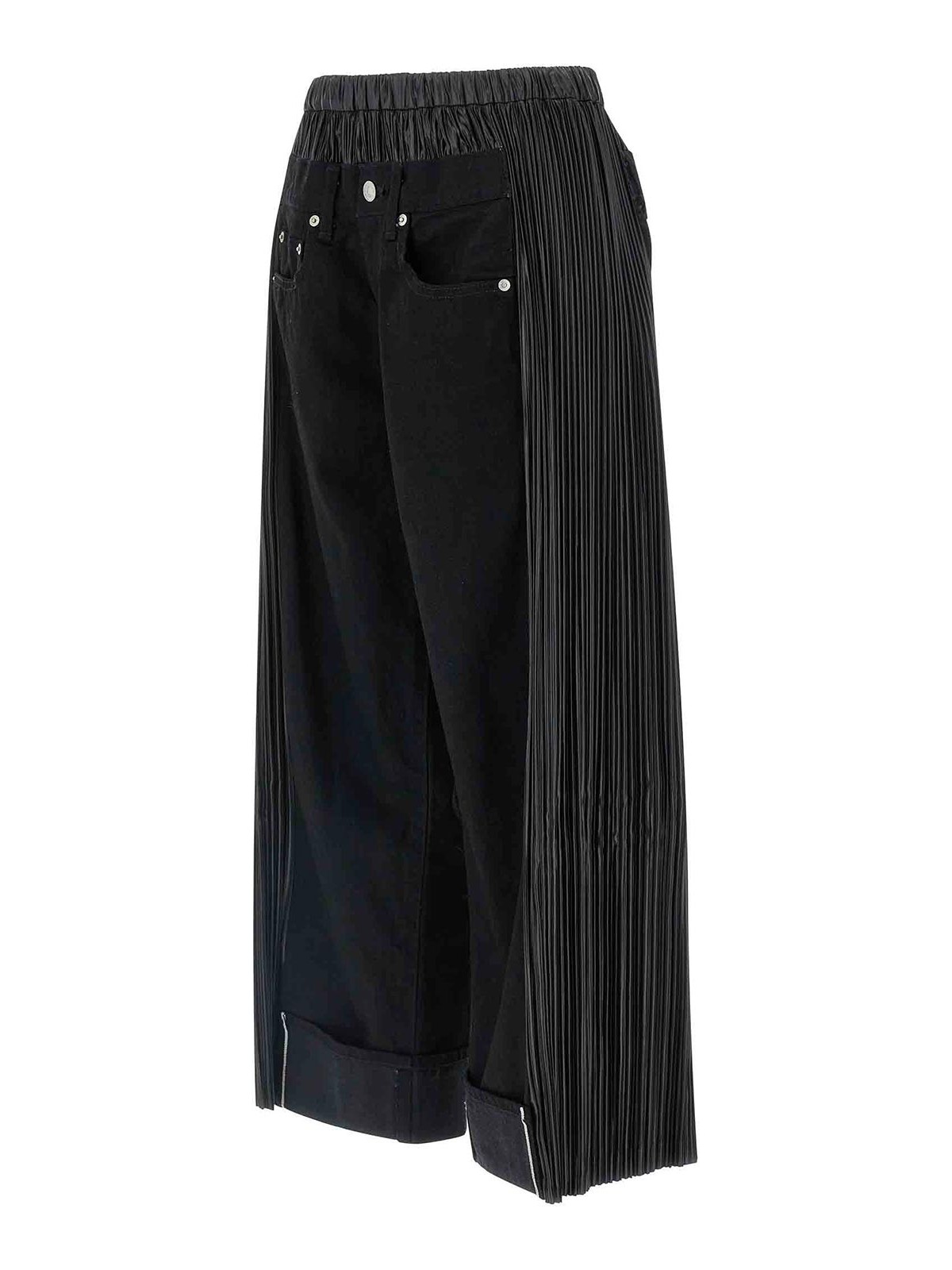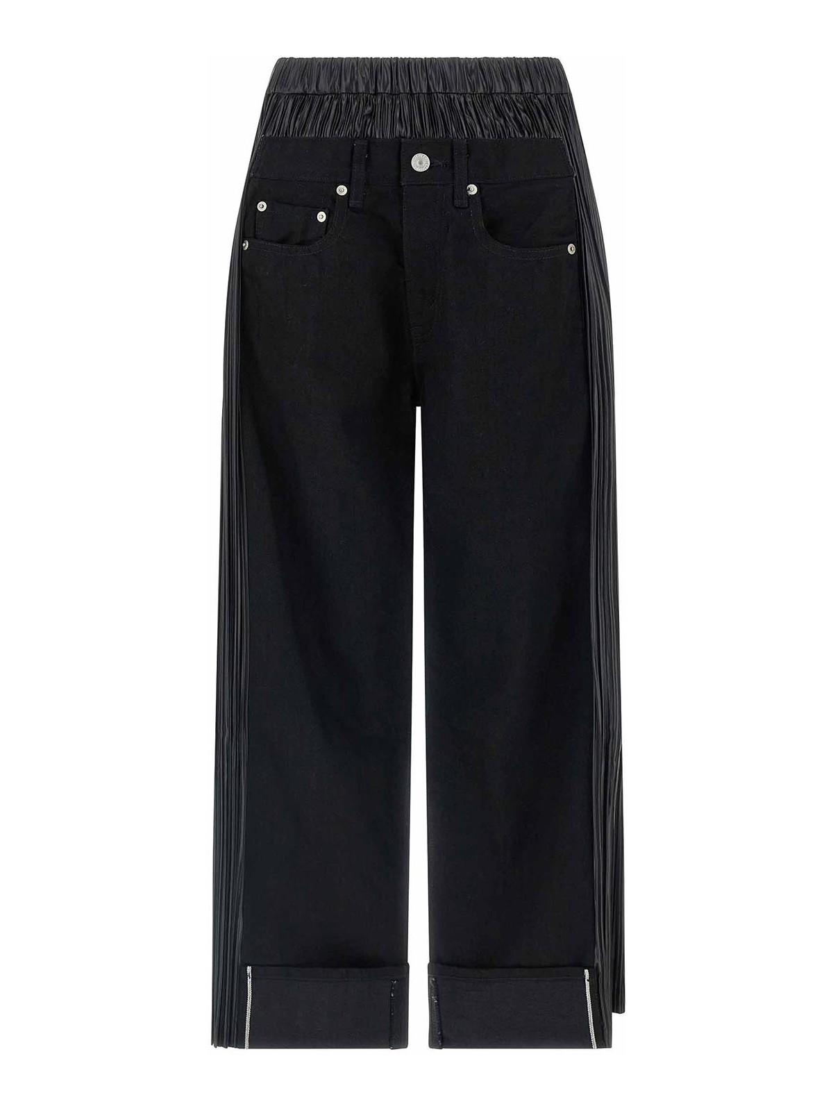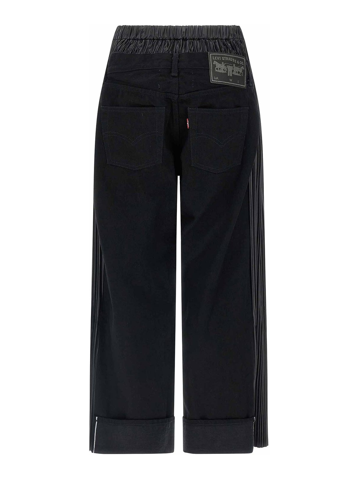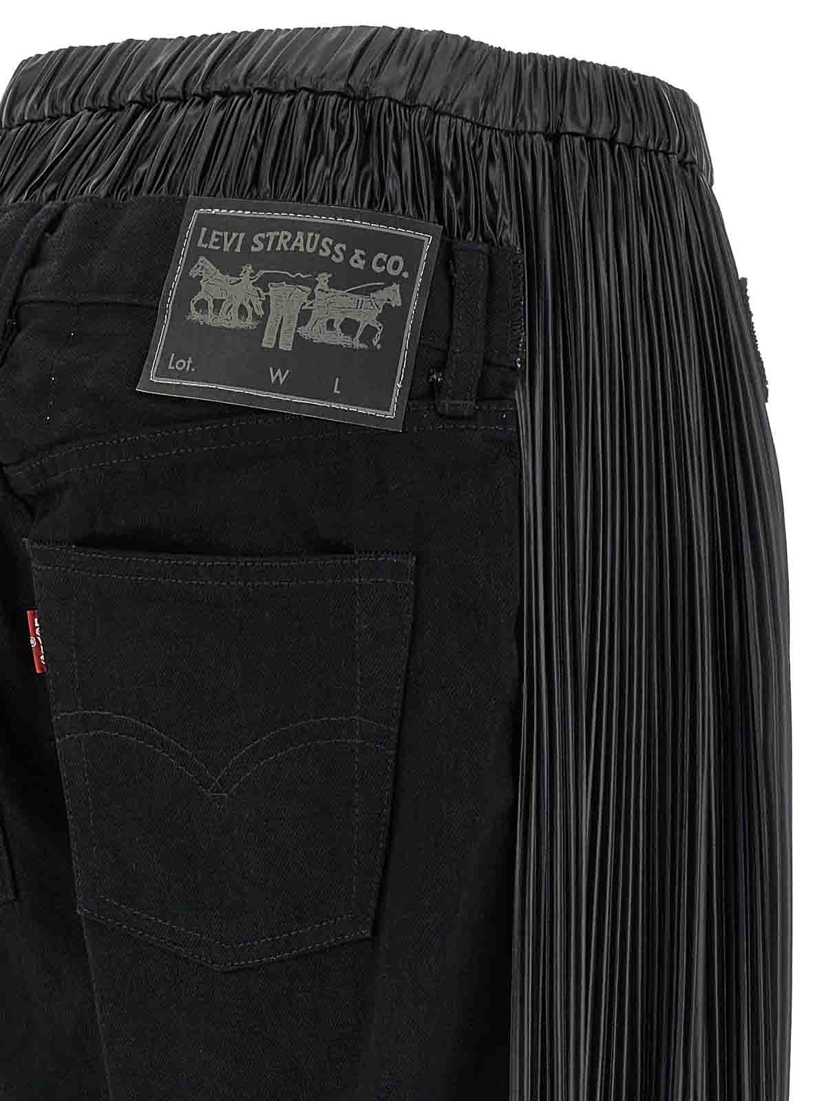 Junya watanabe levi's denim jeans with pleated zip and trompe l'oeil button elastic waistband five pockets wide leg back logo tag