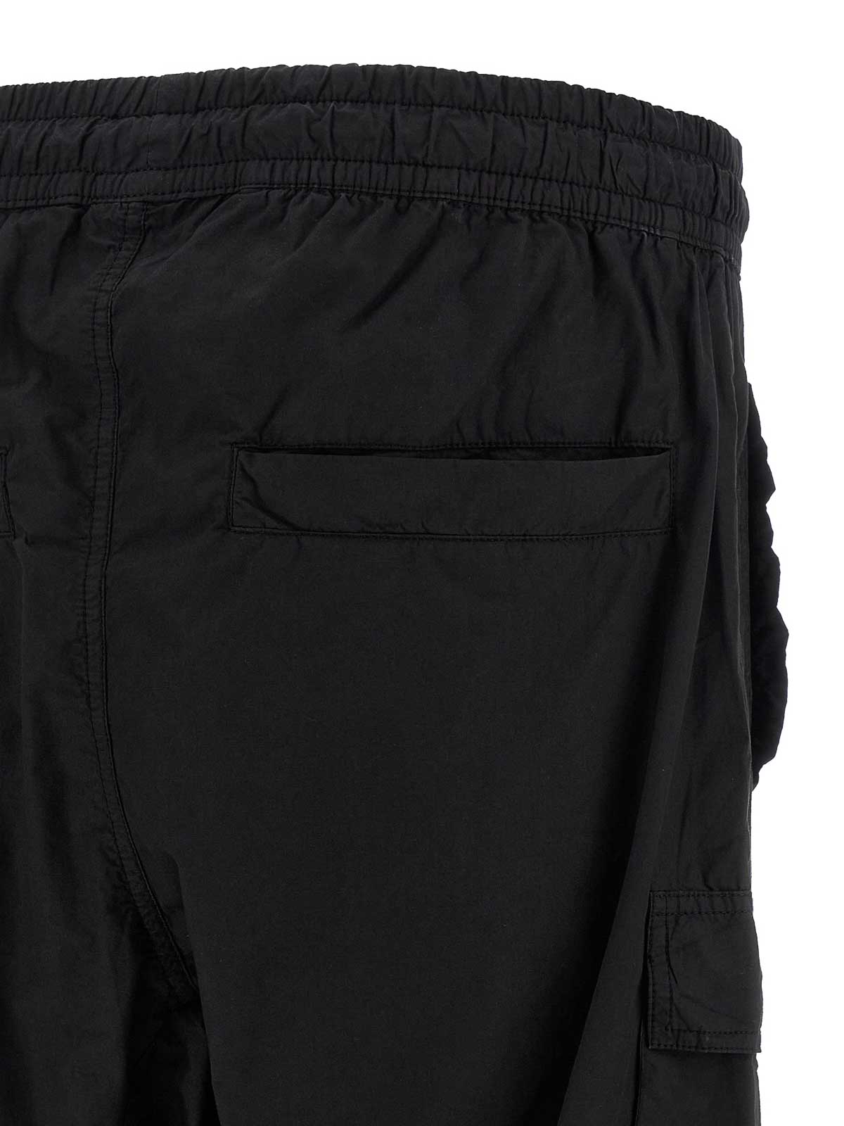 Pantaloni 41' in cotone effetto stropicciato dalla linea cargo con tasche laterali, cavallo basso, elastico in vita con coulisse, tasche, polsini elastici alle caviglie.