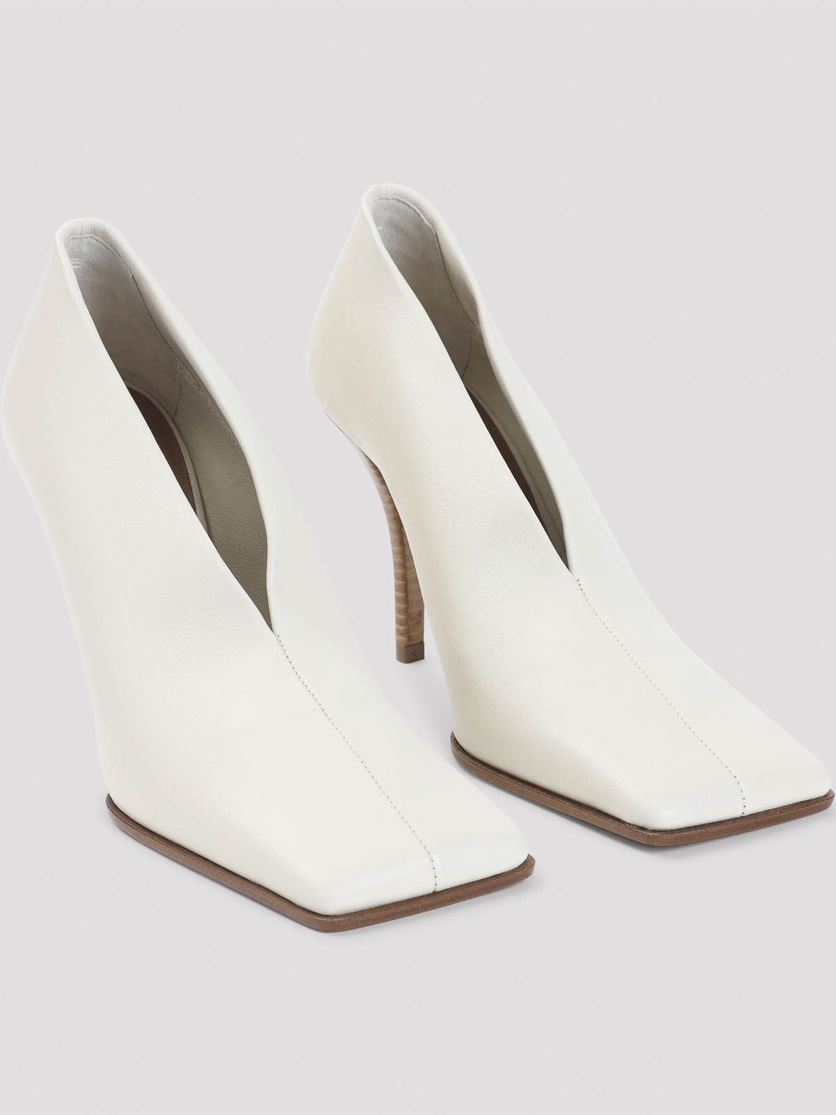 Décolleté Alaa 90 in pelle di agnello bianca. décolleté con tomaia alta realizzate in morbida pelle di agnello bianca, tacco a spillo in legno, sottopiede e suola in pelle.