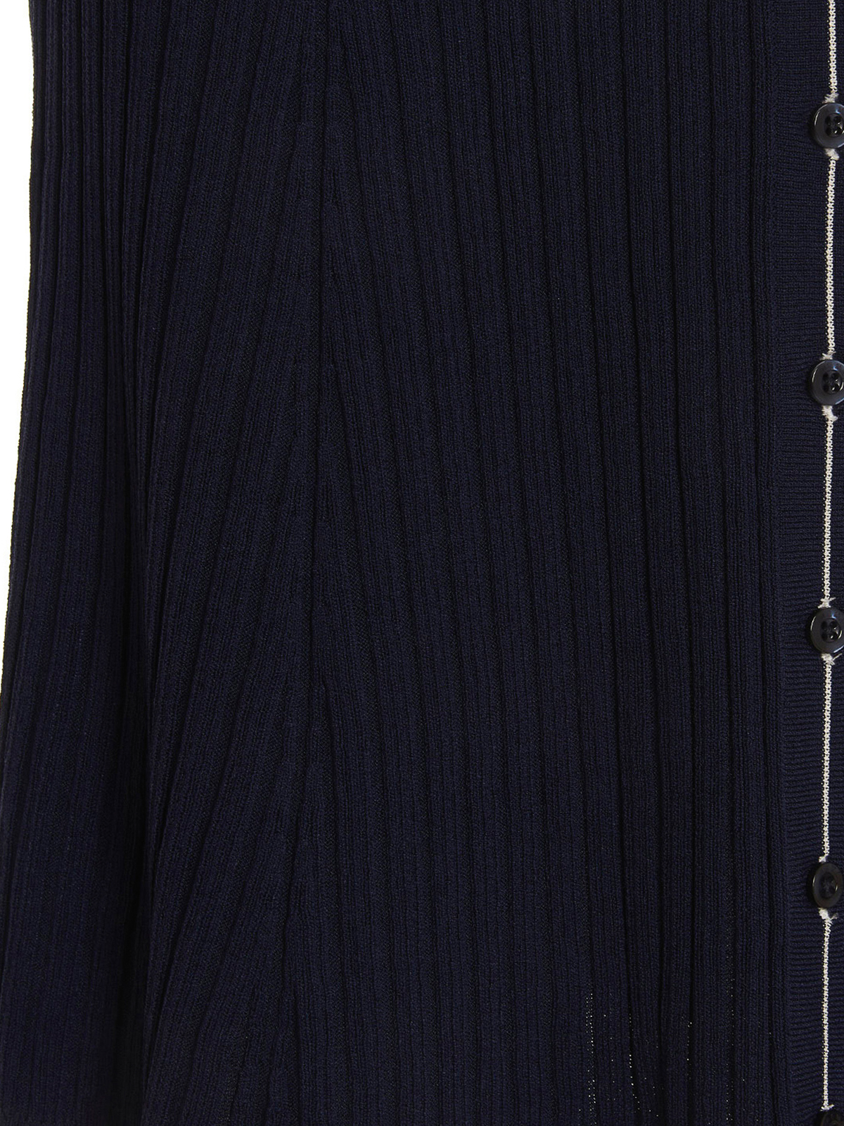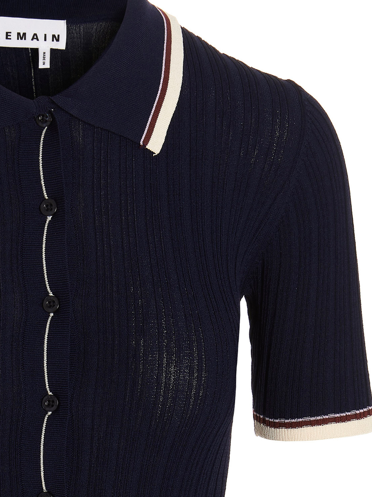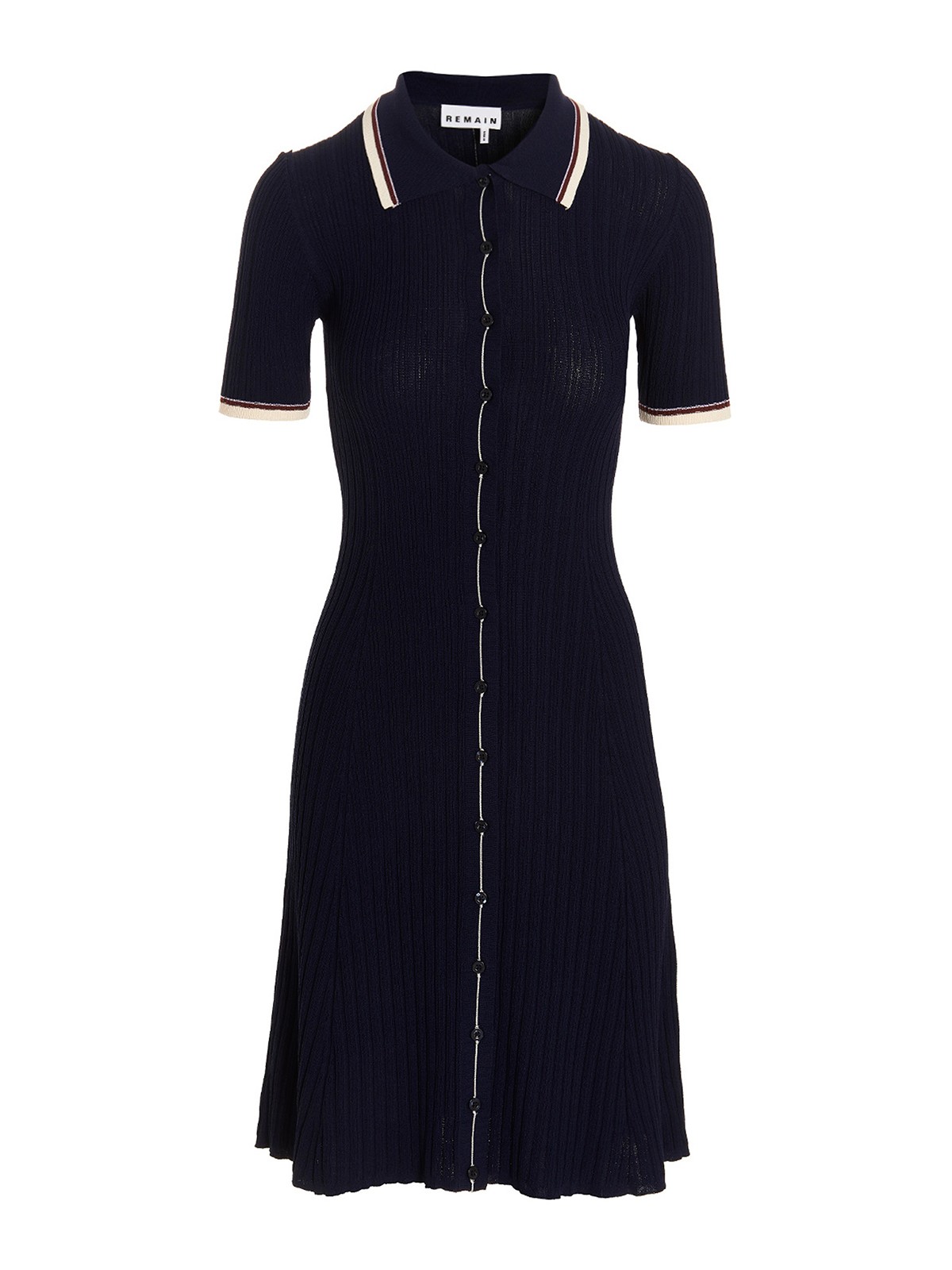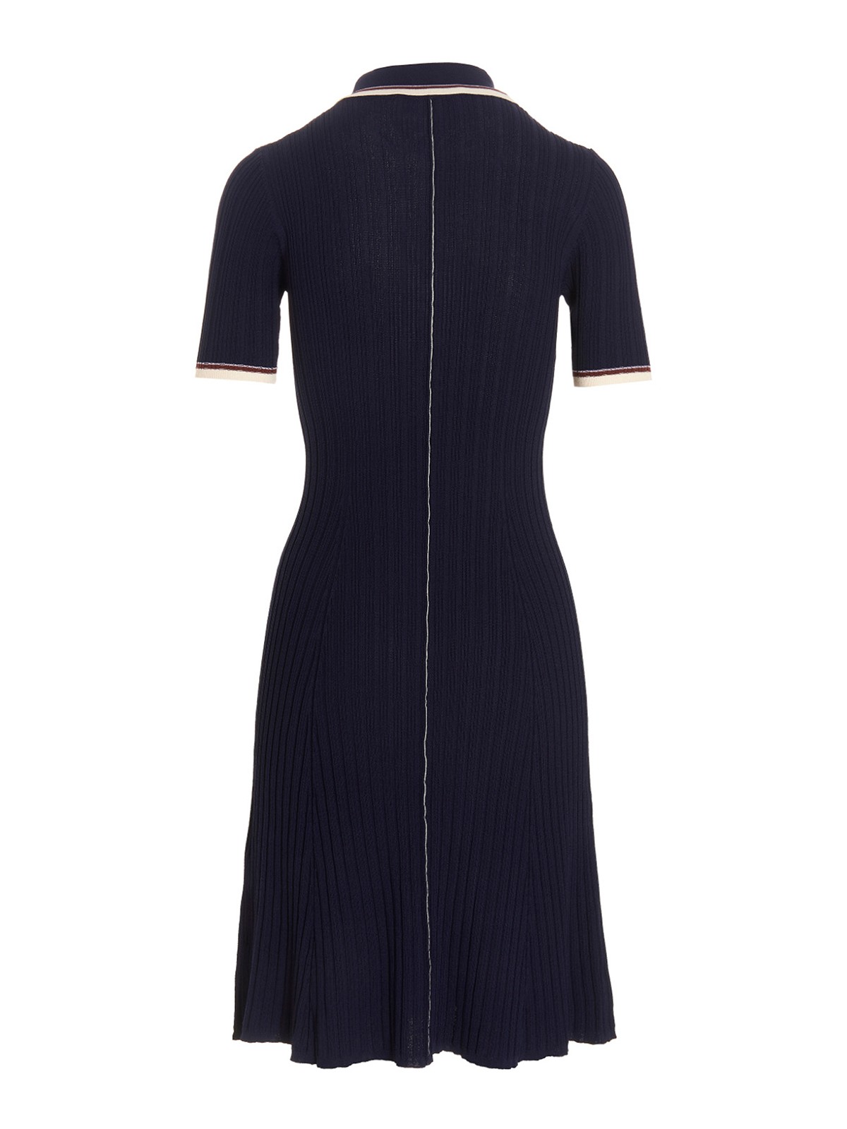 Abito polo svasato in maglia di viscosa con chiusura a bottoni e piping a contrasto