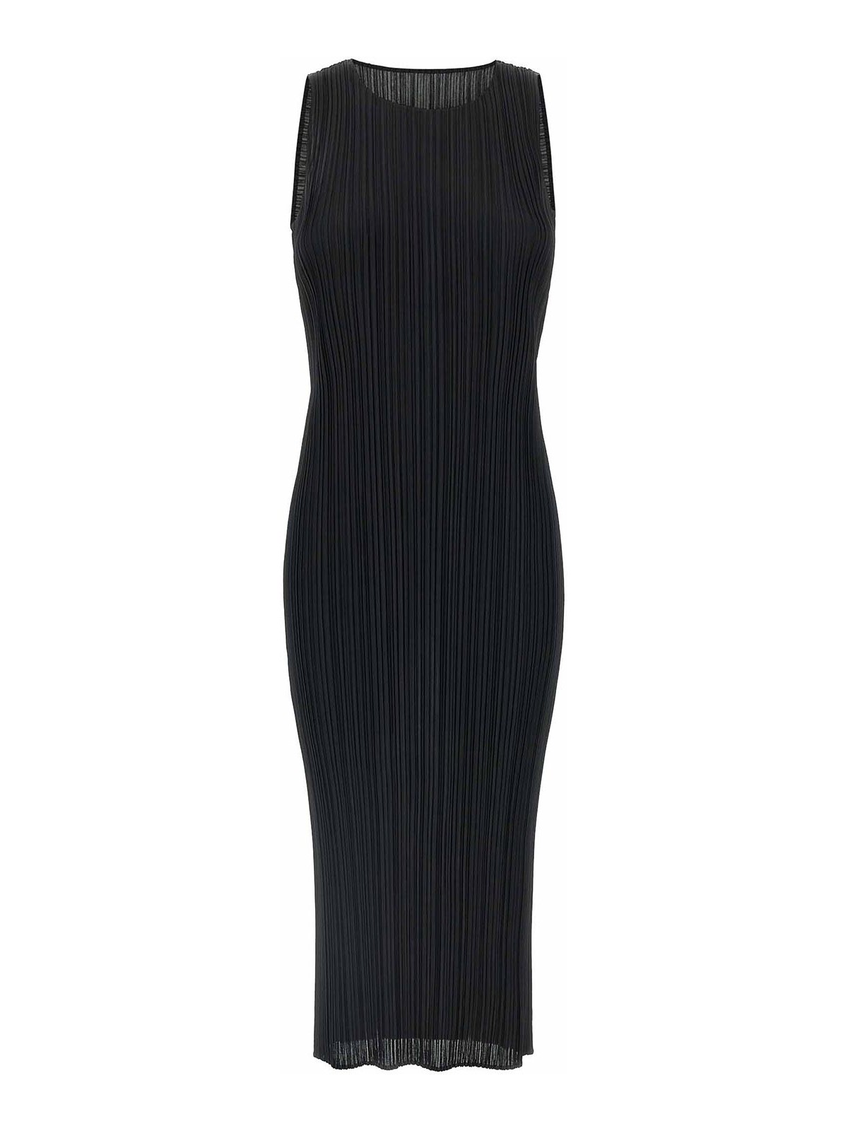 Abito midi basics plissettato con scollo tondo, senza maniche.