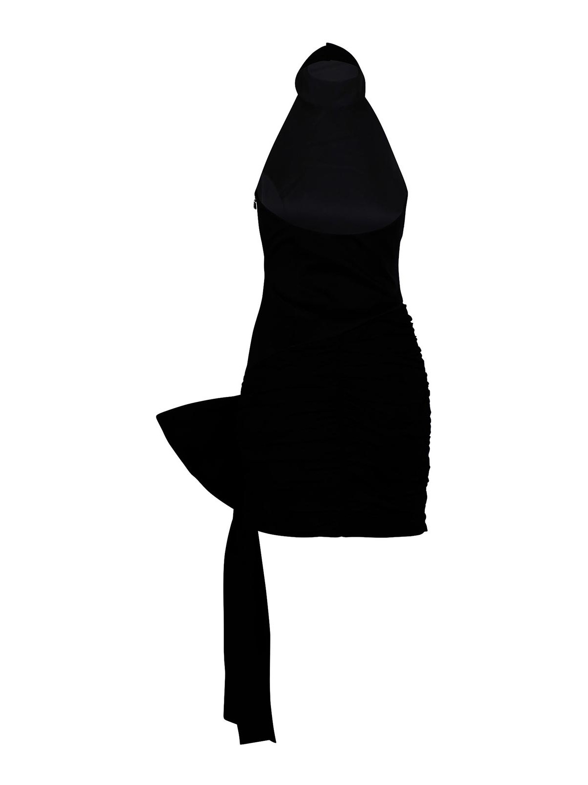 Abito con fiocco di rotate per una donna che ama l'audacia e il coraggio senza rinunciare all'eleganza perfetta per cocktail party o occasioni speciali scollatura all'americana drappeggio con applicazione di un grande fiocco zip sul retro nascosta