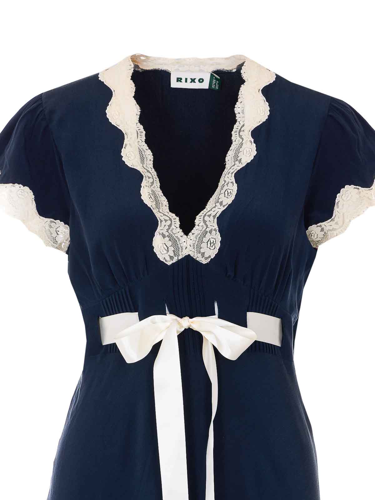 Abito Rixo blu marlice, scollo a V, dettaglio in pizzo in vita