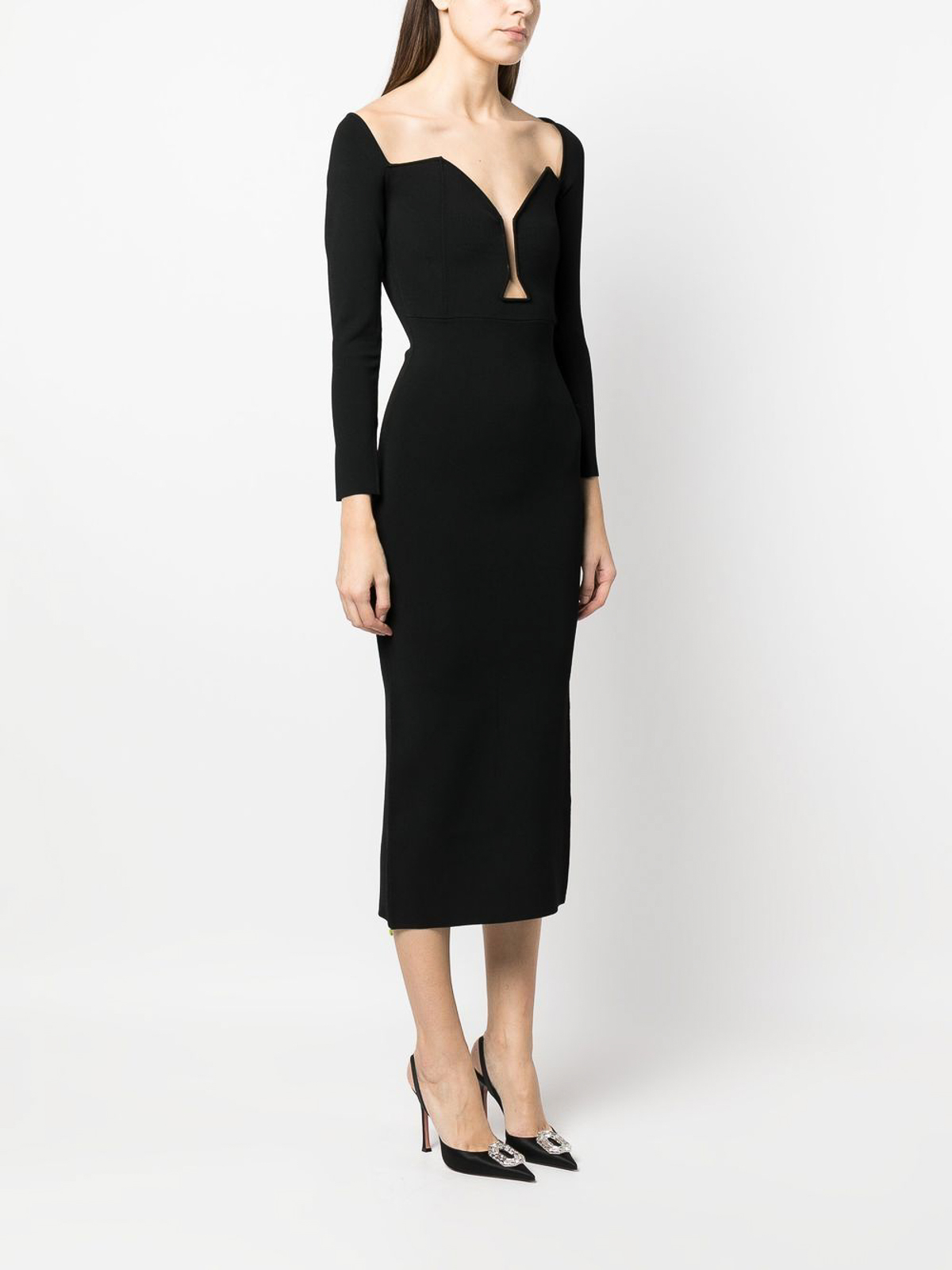 Maxi vestito a maniche lunghe con scollo a V di Roland Mouret con dettagli cut-out scollo a V maniche lunghe vita aderente maxi e nero
