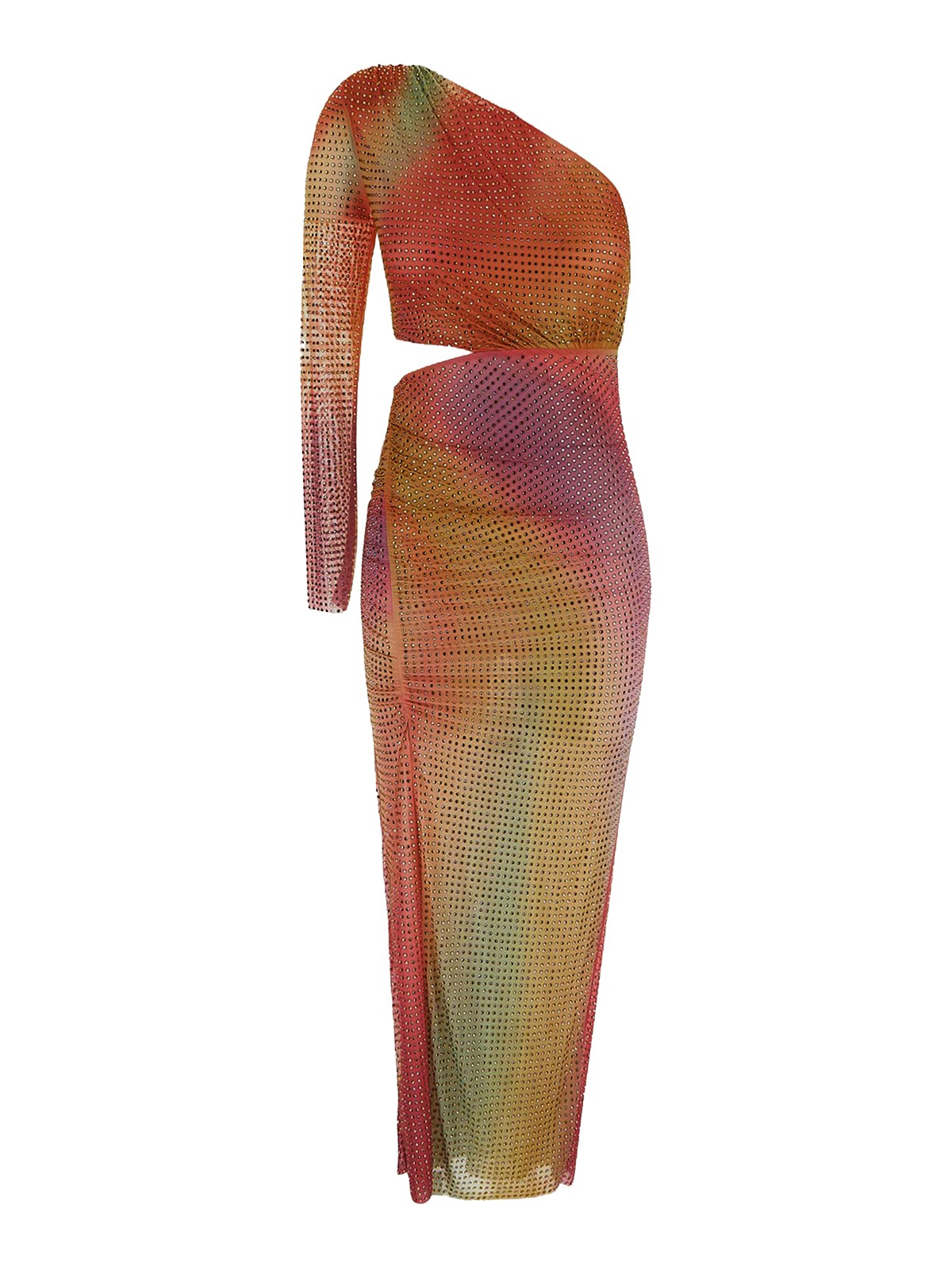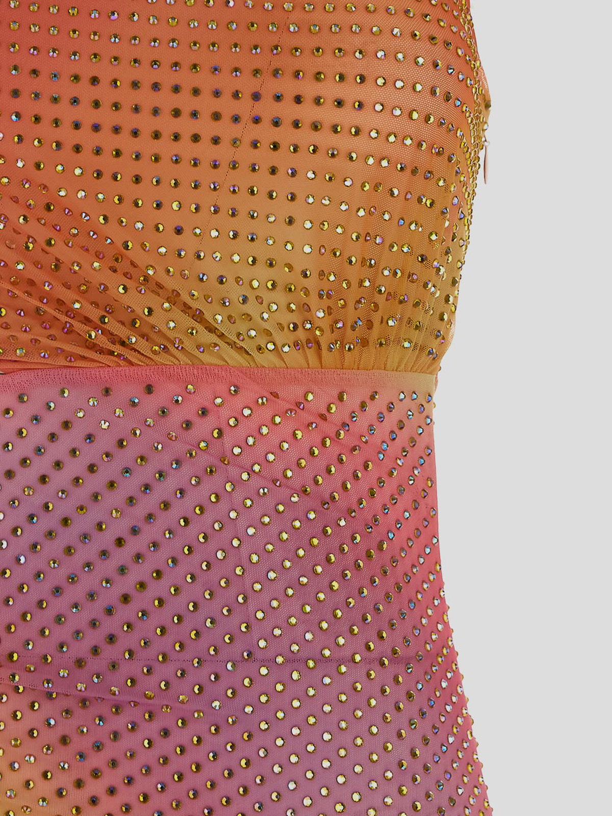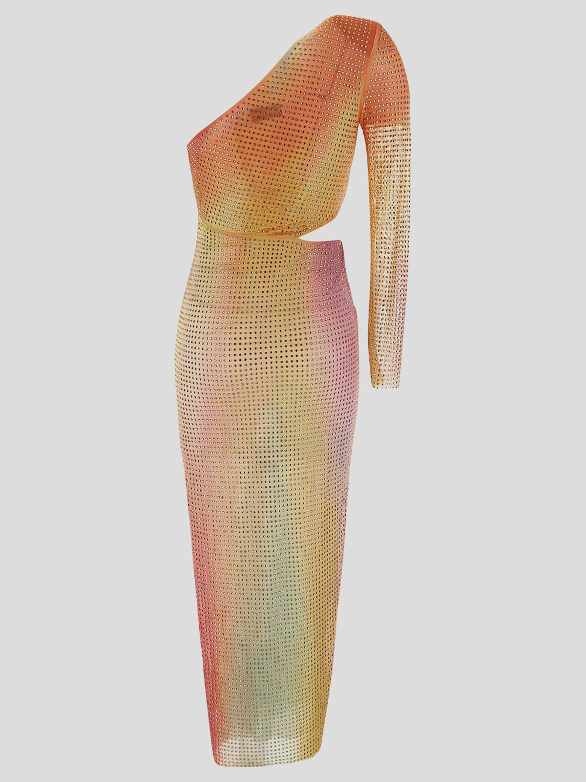 Abito midi Self portrait in poliestere stampa multicolor con decorazioni termoadesive