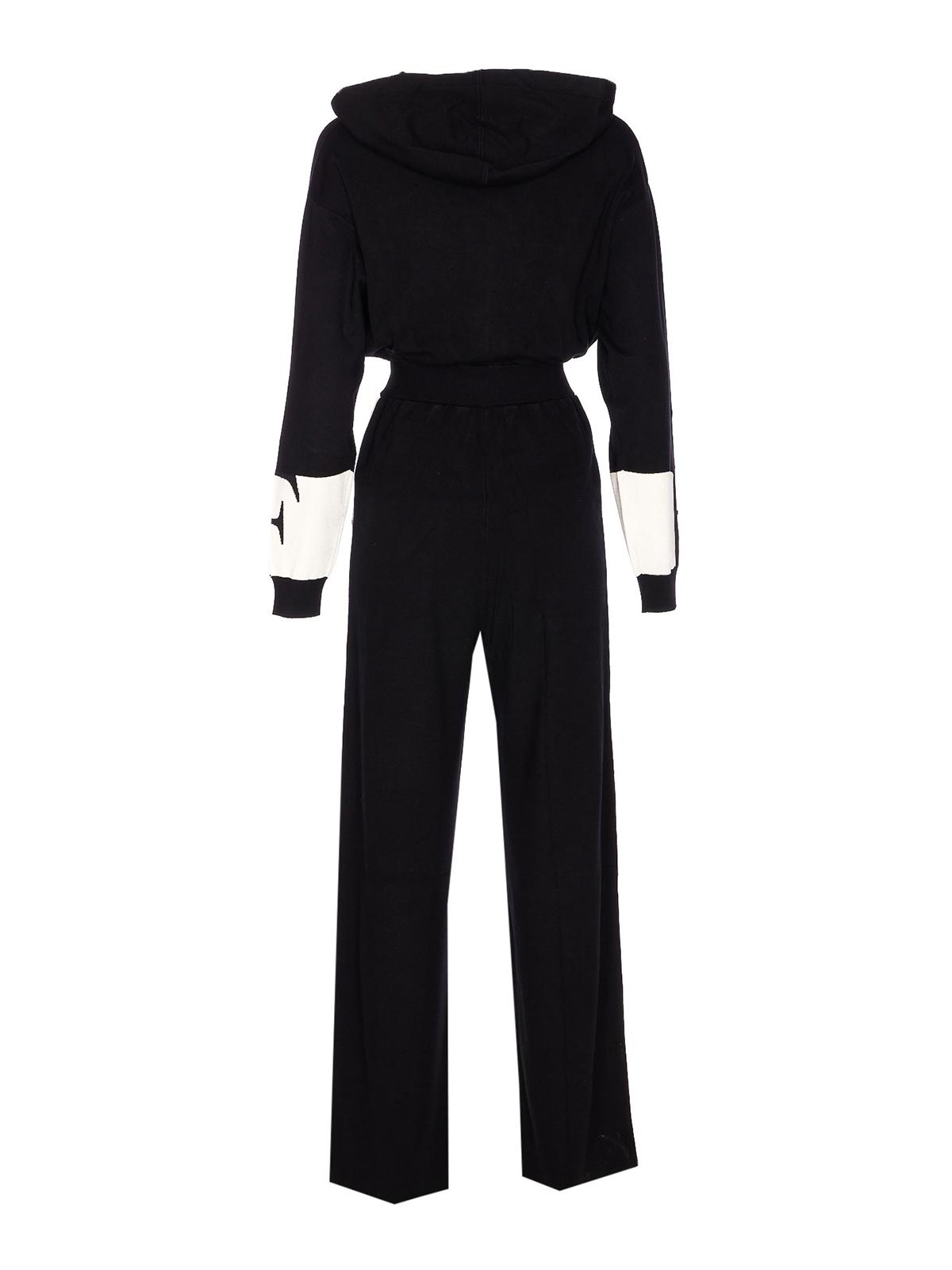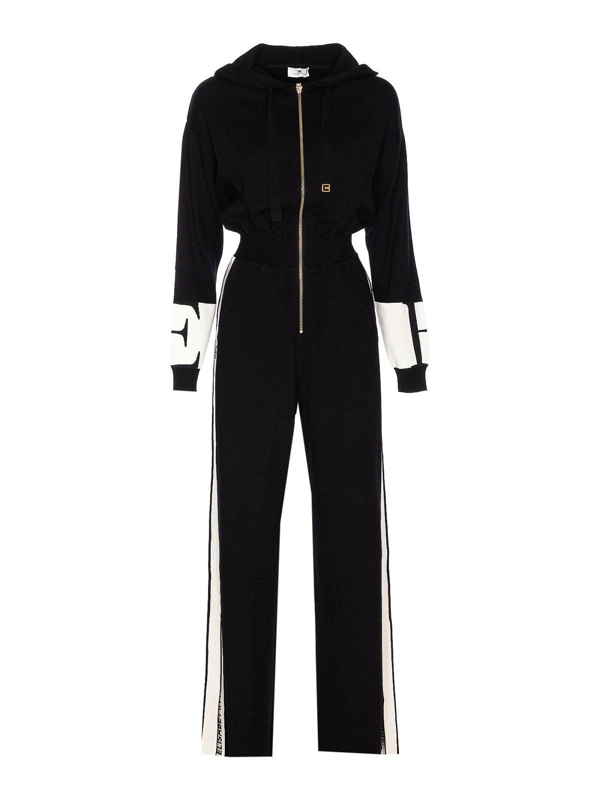 Elisabetta Franchi Black Vestito a maglia a maglia a maniche lunghe Zip sul cappuccio delle tasche laterali con logo Coulisse
