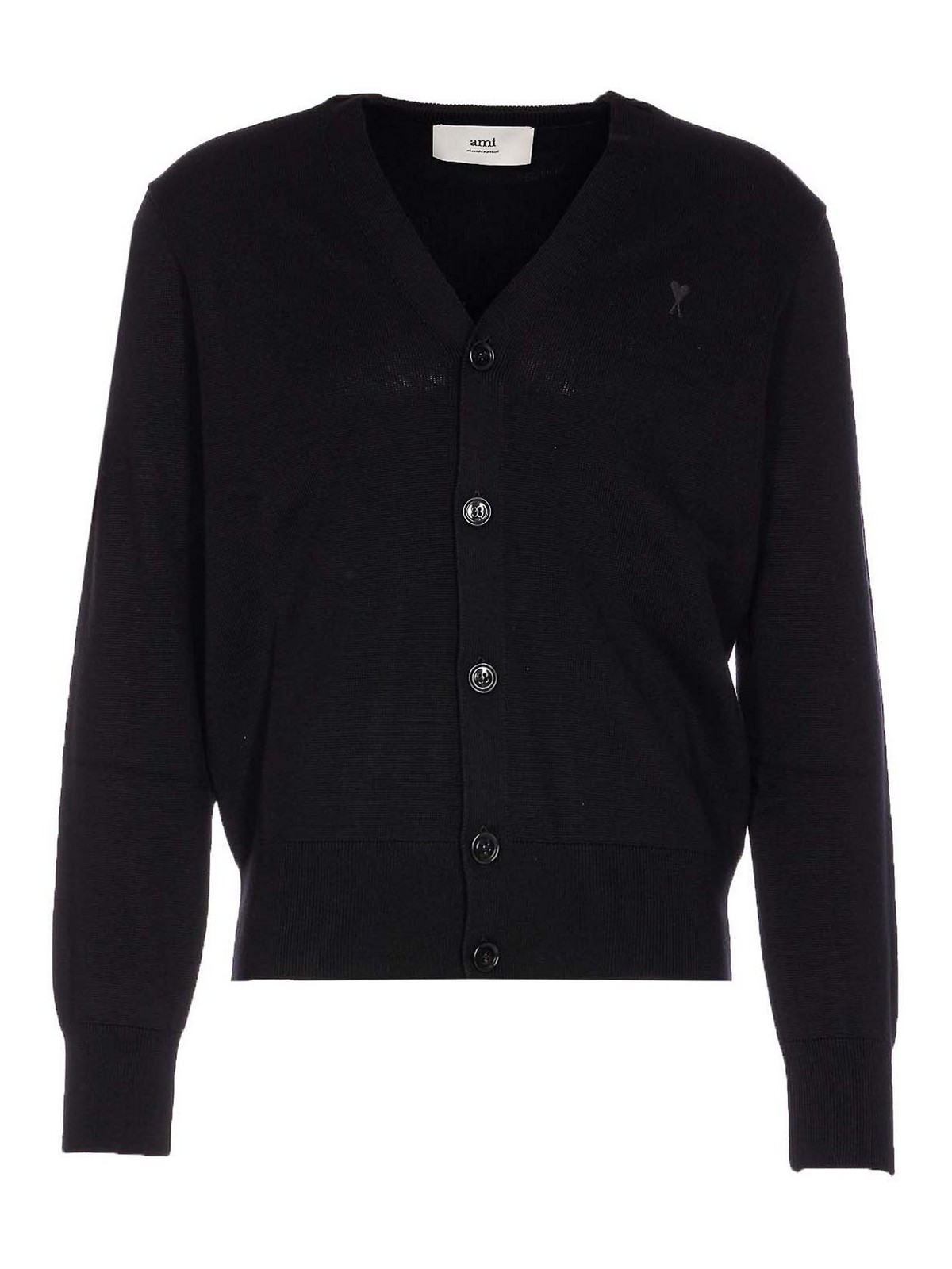 Ami Alexandre Mattiussi Black ADC Cardigan con bottoni frontali a maniche lunghe ricamate Ami de coeur maniche lunghe