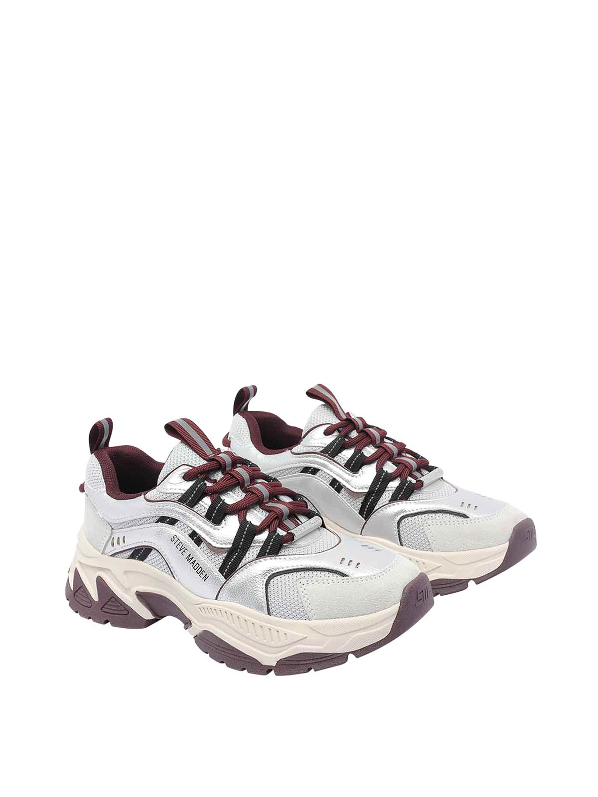 Steve Madden Gray anima sneaker, punta rotonda, stampa leopardata, logo laterale, chiusura dei lacci
