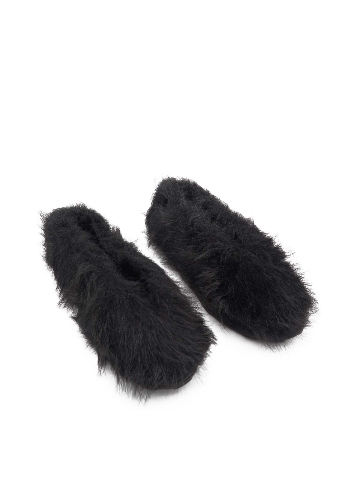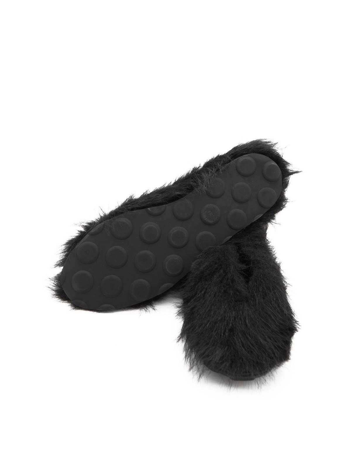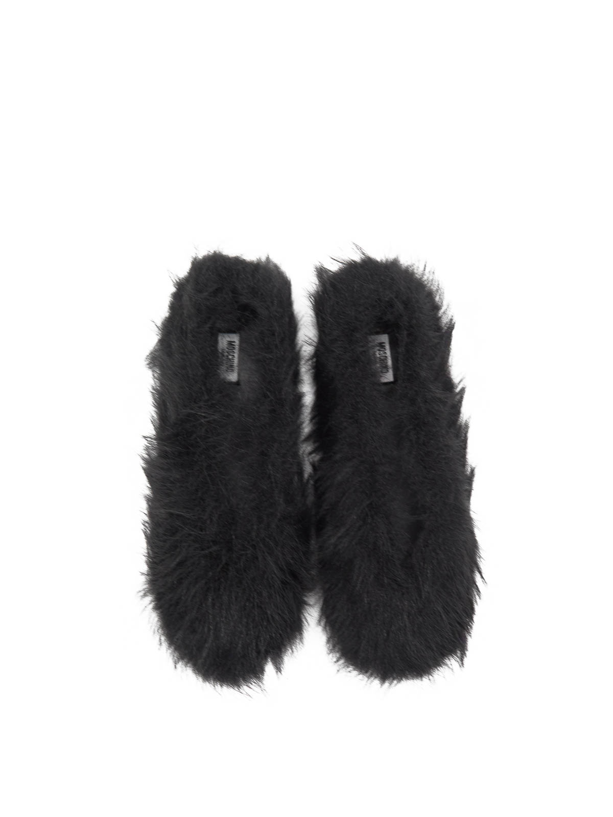 furry ballerina in nero. ballerina di moschino dalla silhouette destrutturata e, l'esterno in ecopelliccia con etichetta a lato con logo . esterno in tessuto soffice, punta arrotondata, suola piatta, etichetta a lato in tessuto con logo, fodera in pelle.