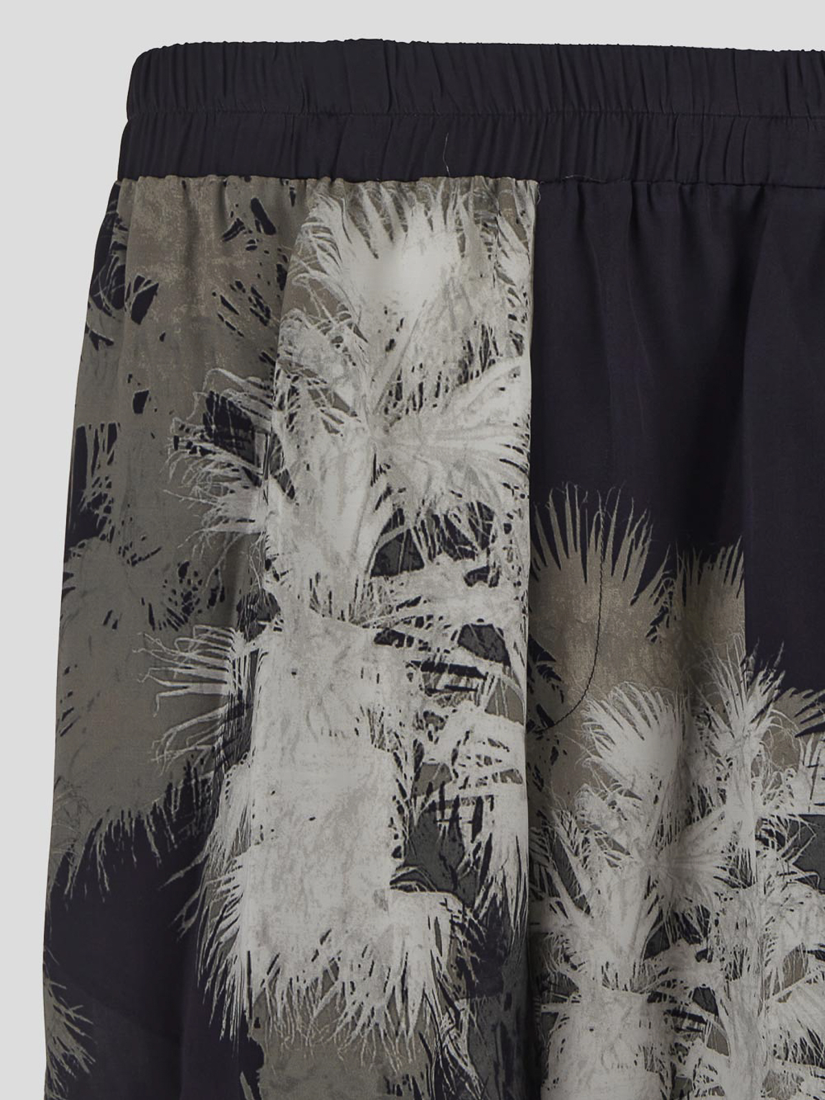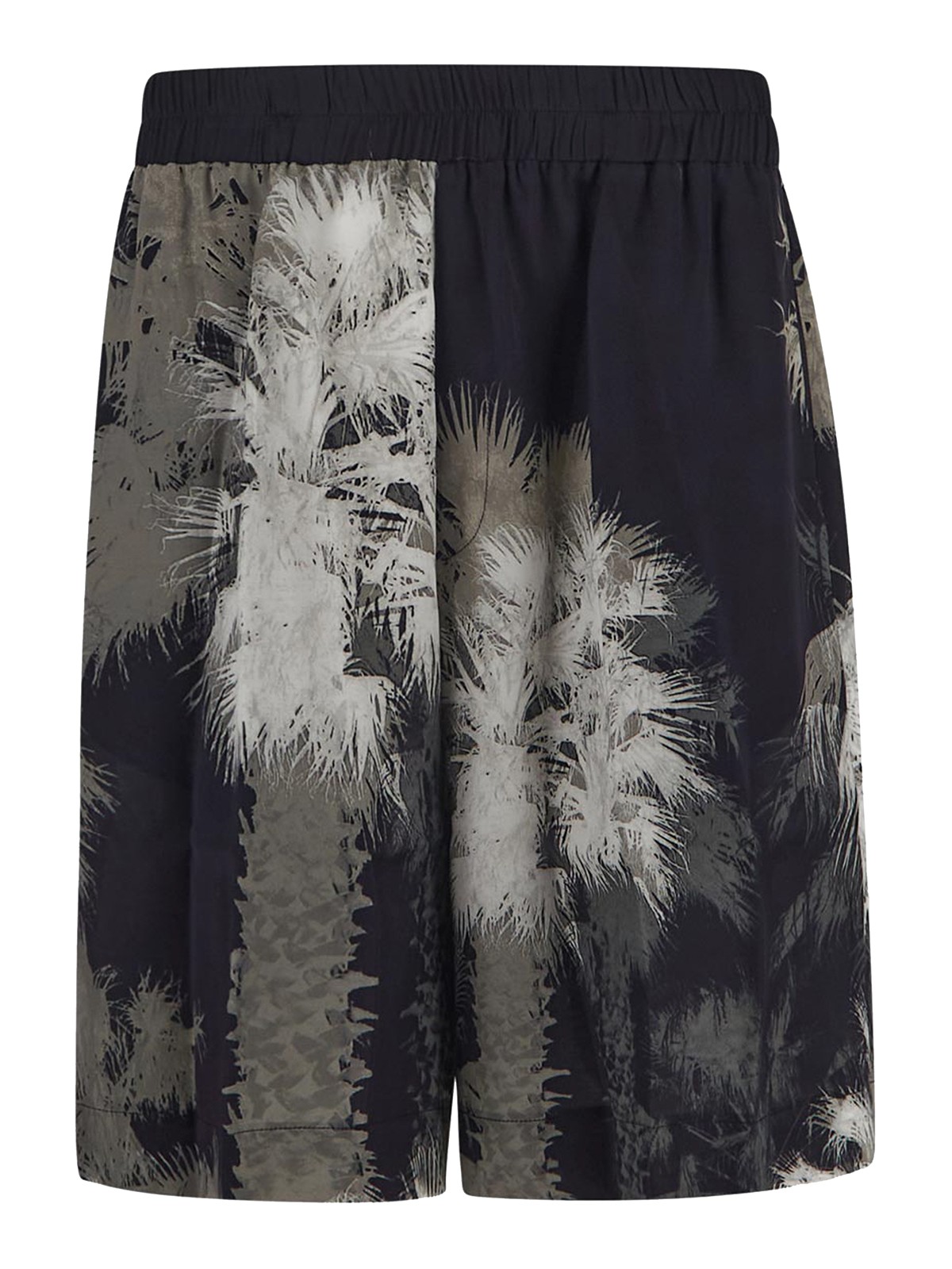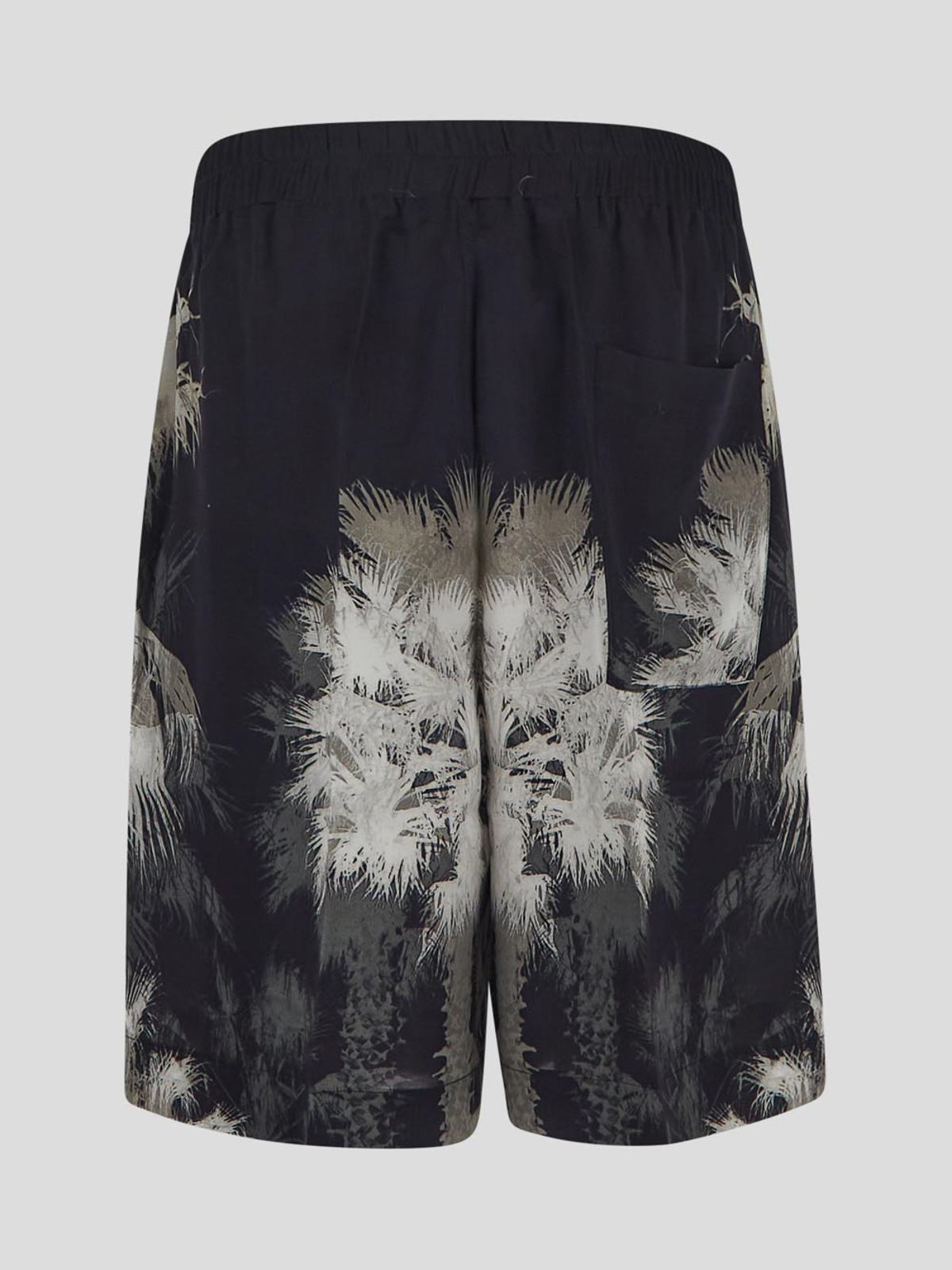 Bermuda Laneus in raso di viscosa nero con stampa palme a contrasto