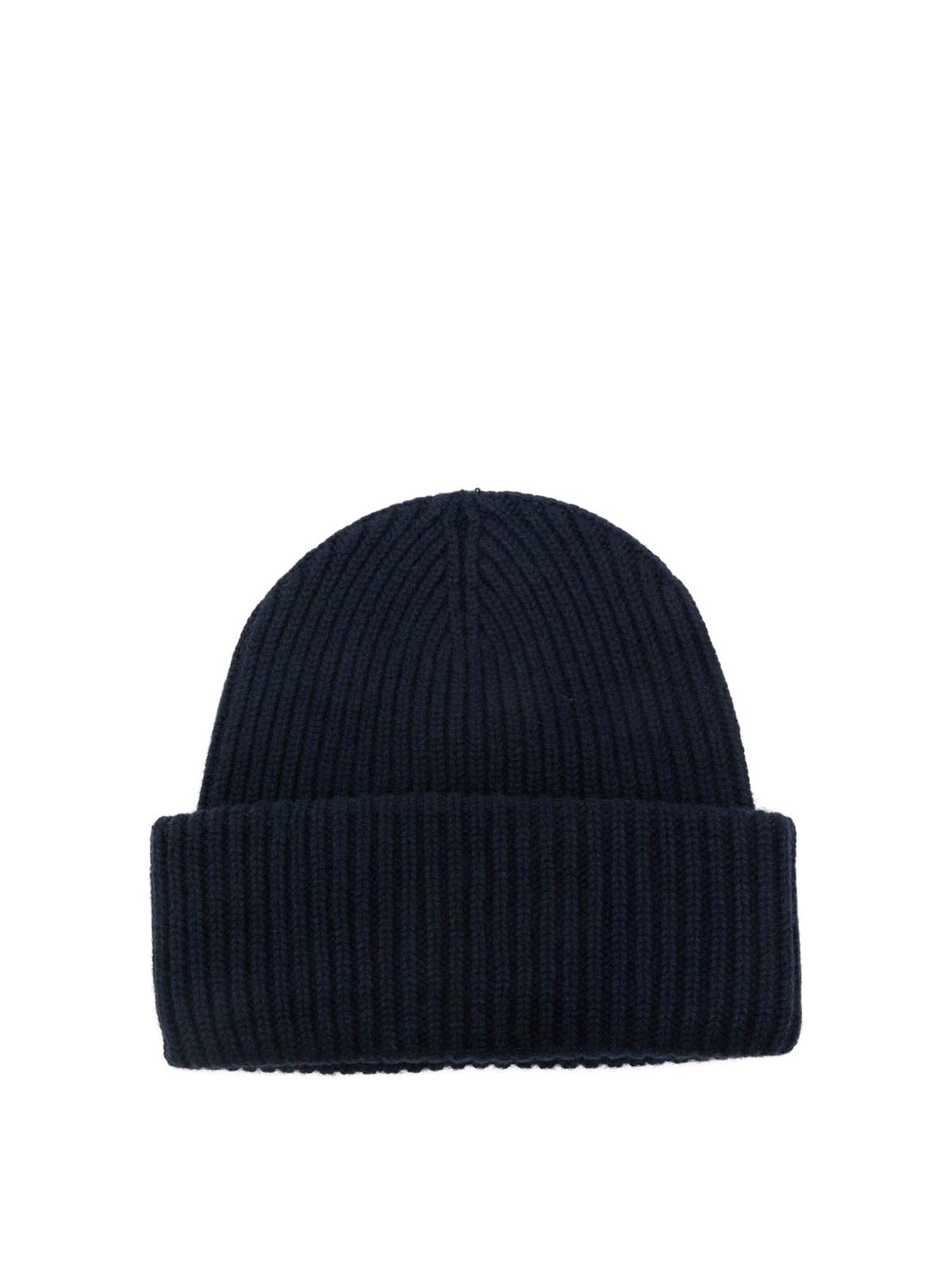 Berretto a coste blu navy di Mc Saint Barth caratterizzato da una toppa con logo, un accessorio accogliente ed elegante perfetto per stare al caldo aggiungendo un tocco contemporaneo ai look di tutti i giorni