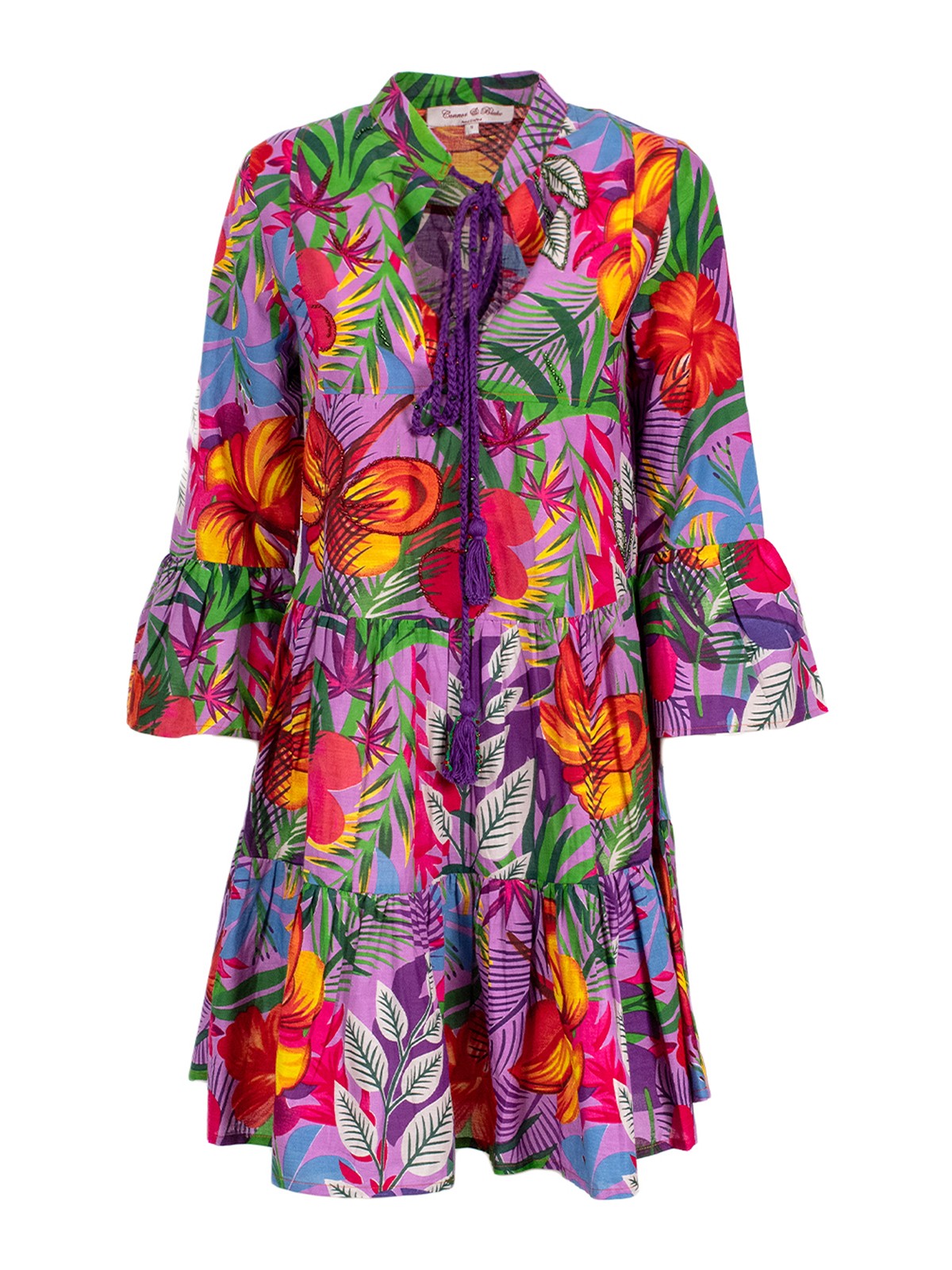 Abito stampa floreale manica 3/4 100% cotone