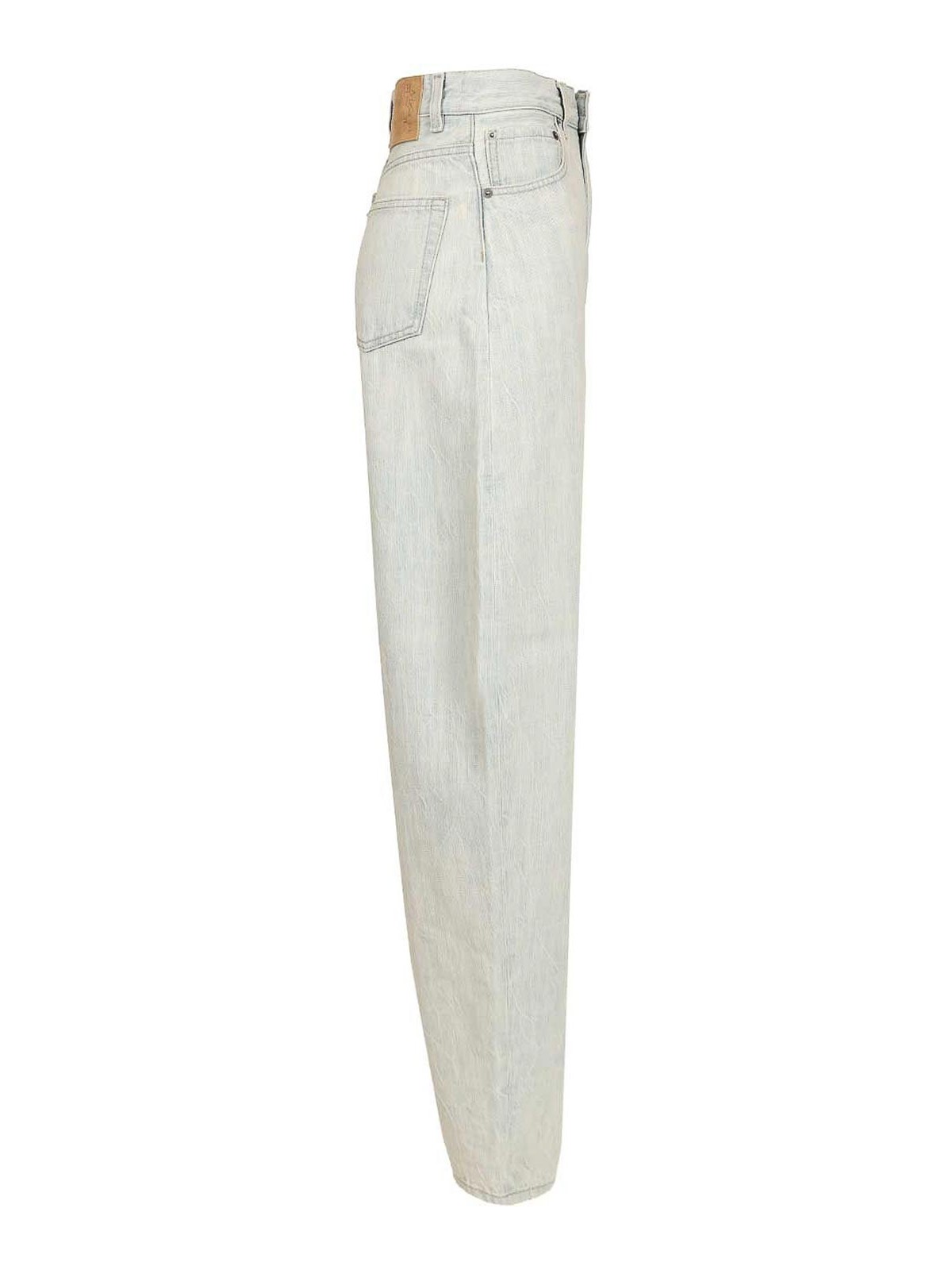 Pantaloni in denim dalla silhouette a palloncino che presentano scolpiture lungo la gamba e una raffinata finitura affusolata