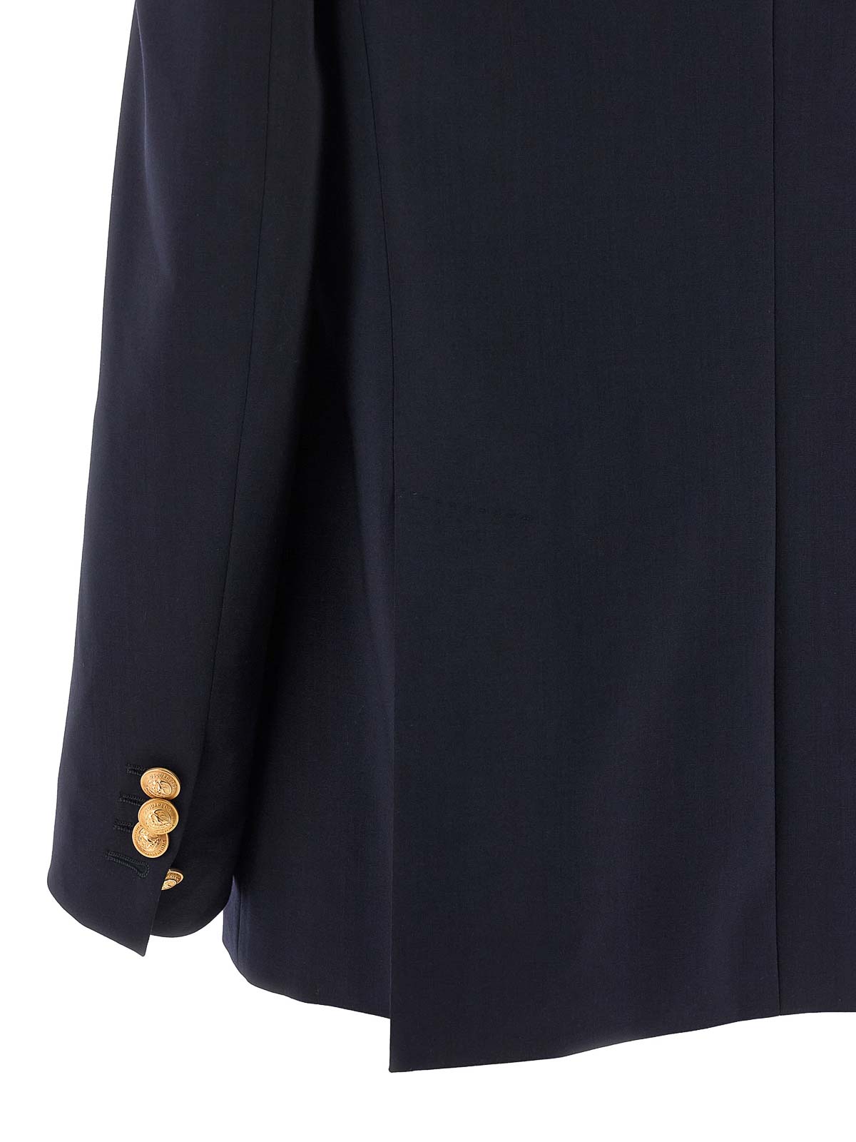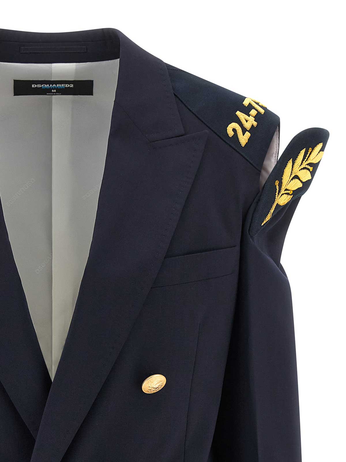 Blazer doppiopetto Bettter x dsquared2 in lana con chiusura frontale con bottoni in metallo, revers a lancia, taschino, tasche con patta, tracolla rigida con ricamo e cut-out, maniche lunghe, spacchi posteriori, fodera in tela monogram.