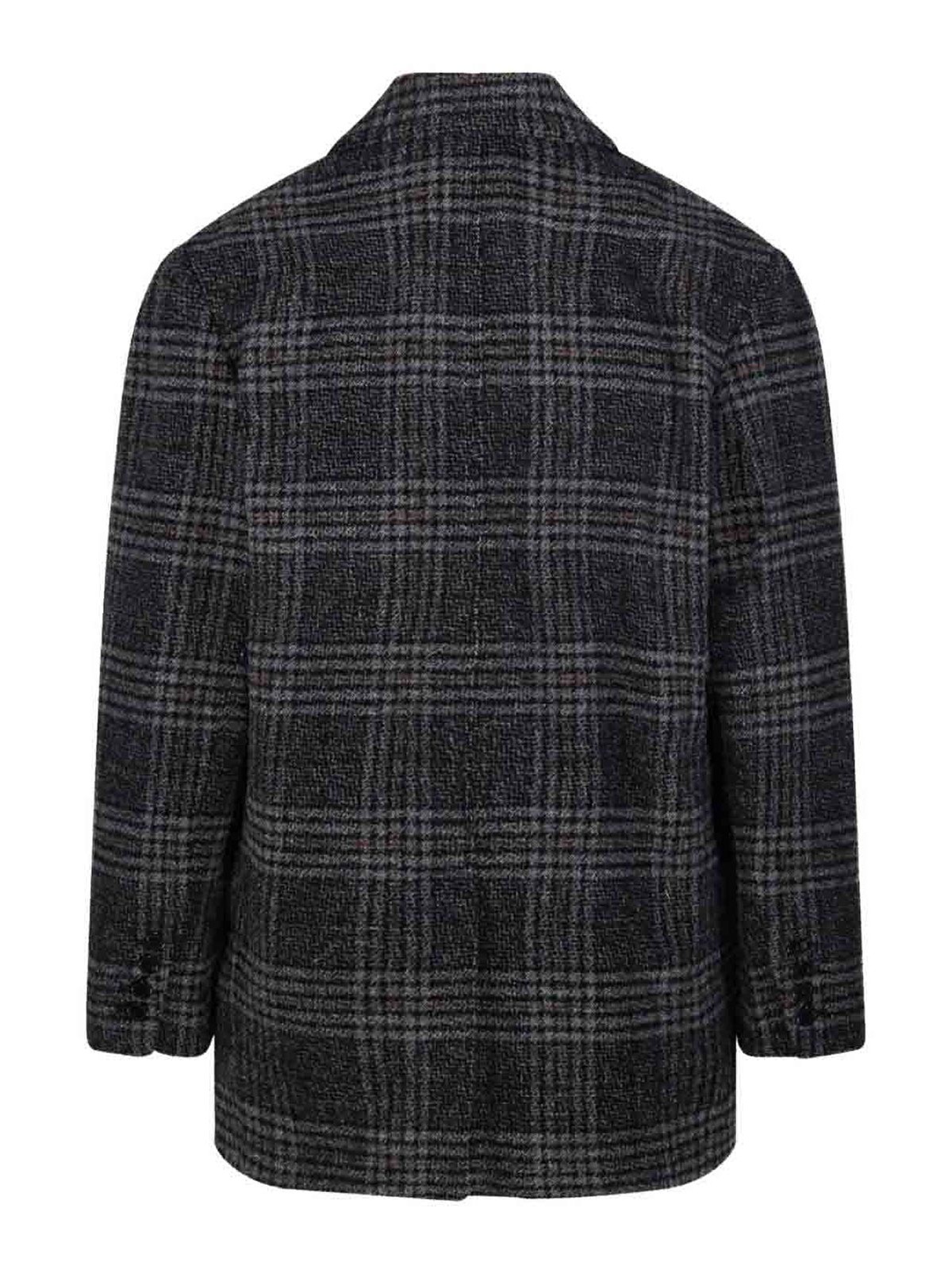 Grigio motivo a quadri monopetto revers classici tasche ad aletta maniche lunghe