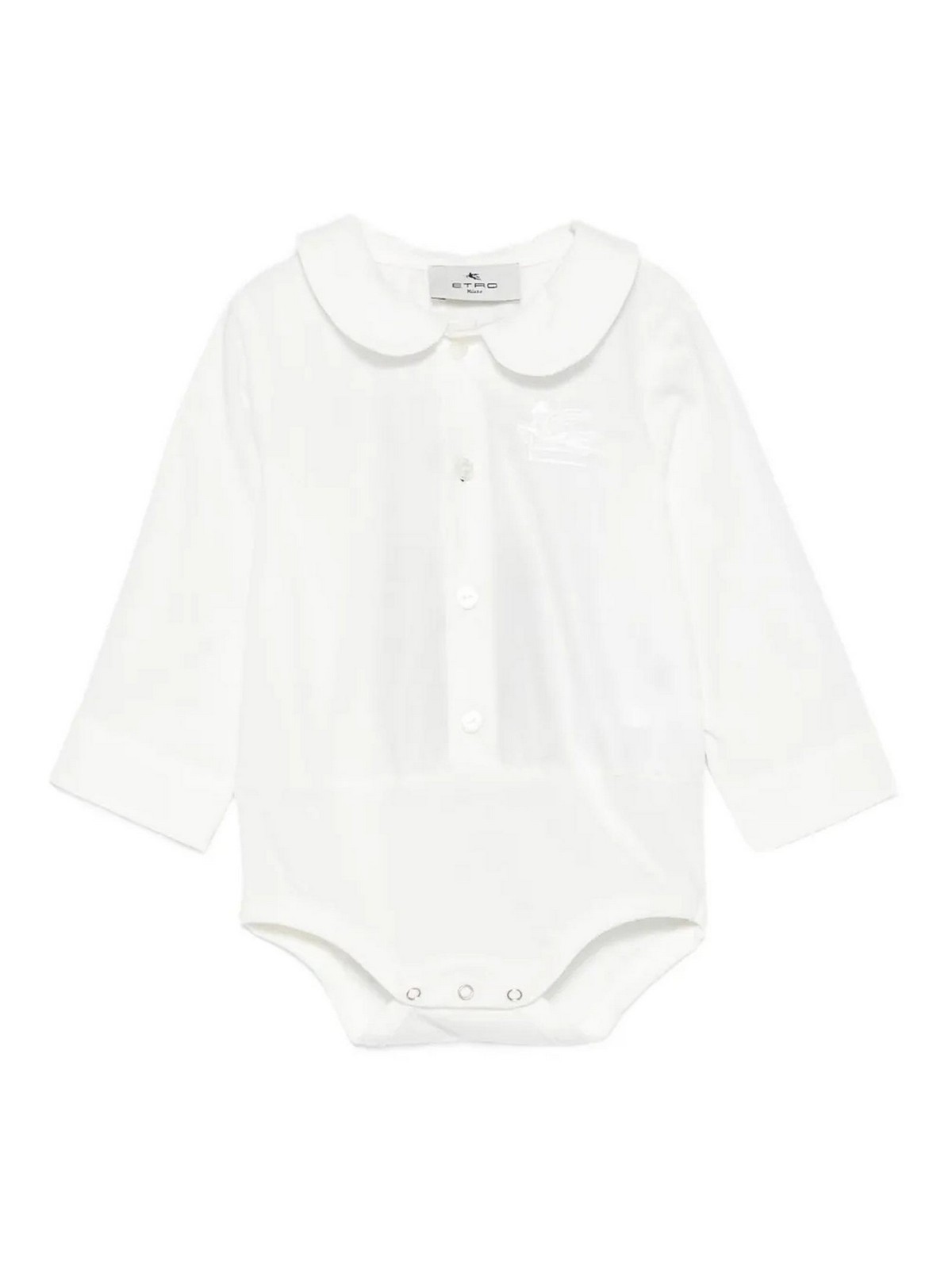 Body con colletto alla peter pan bianco colletto alla peter pan maniche lunghe chiusura a bottoni logo ricamato chiusura con bottone a pressione
