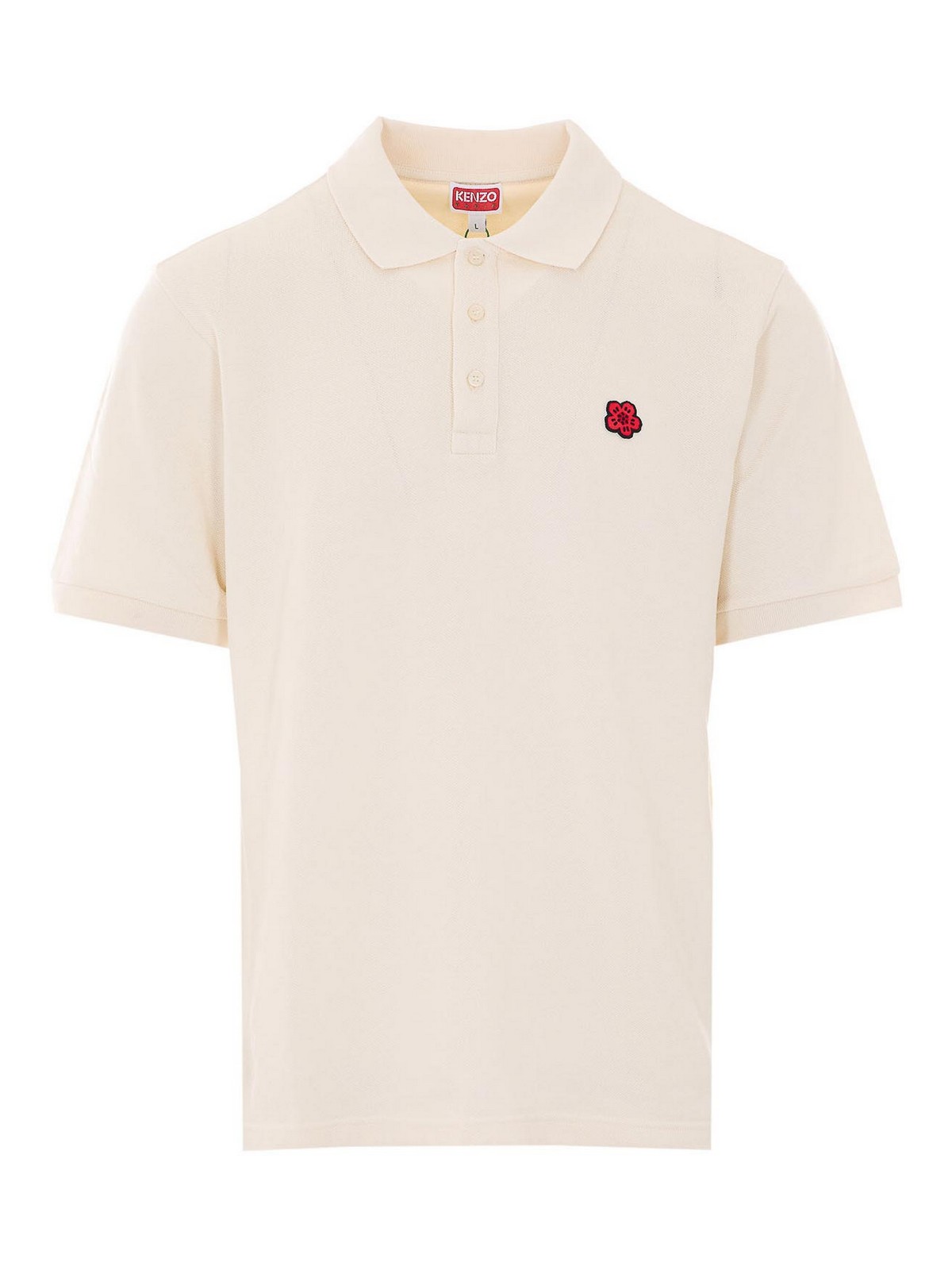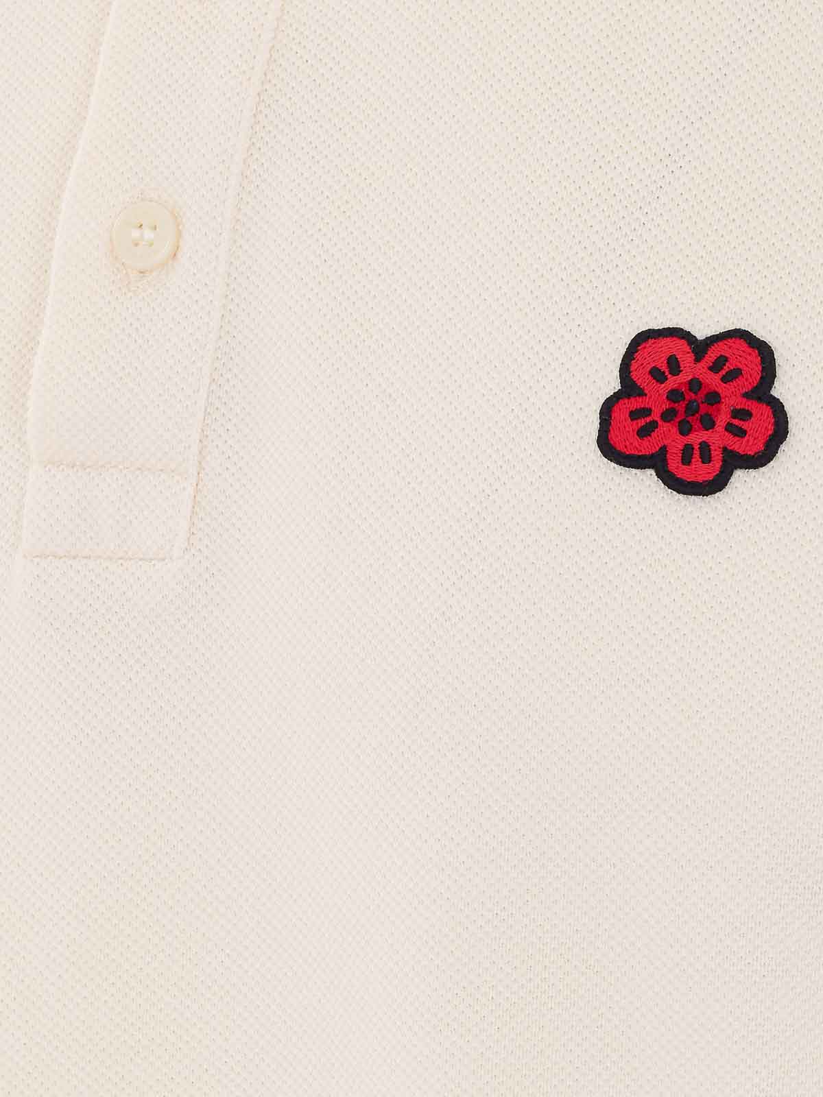 Polo Kenzo ecrù gots boke flower, colletto regolare, chiusura con bottoni, dettaglio fiore patch sul davanti, maniche corte, mini logo ricamato sul retro