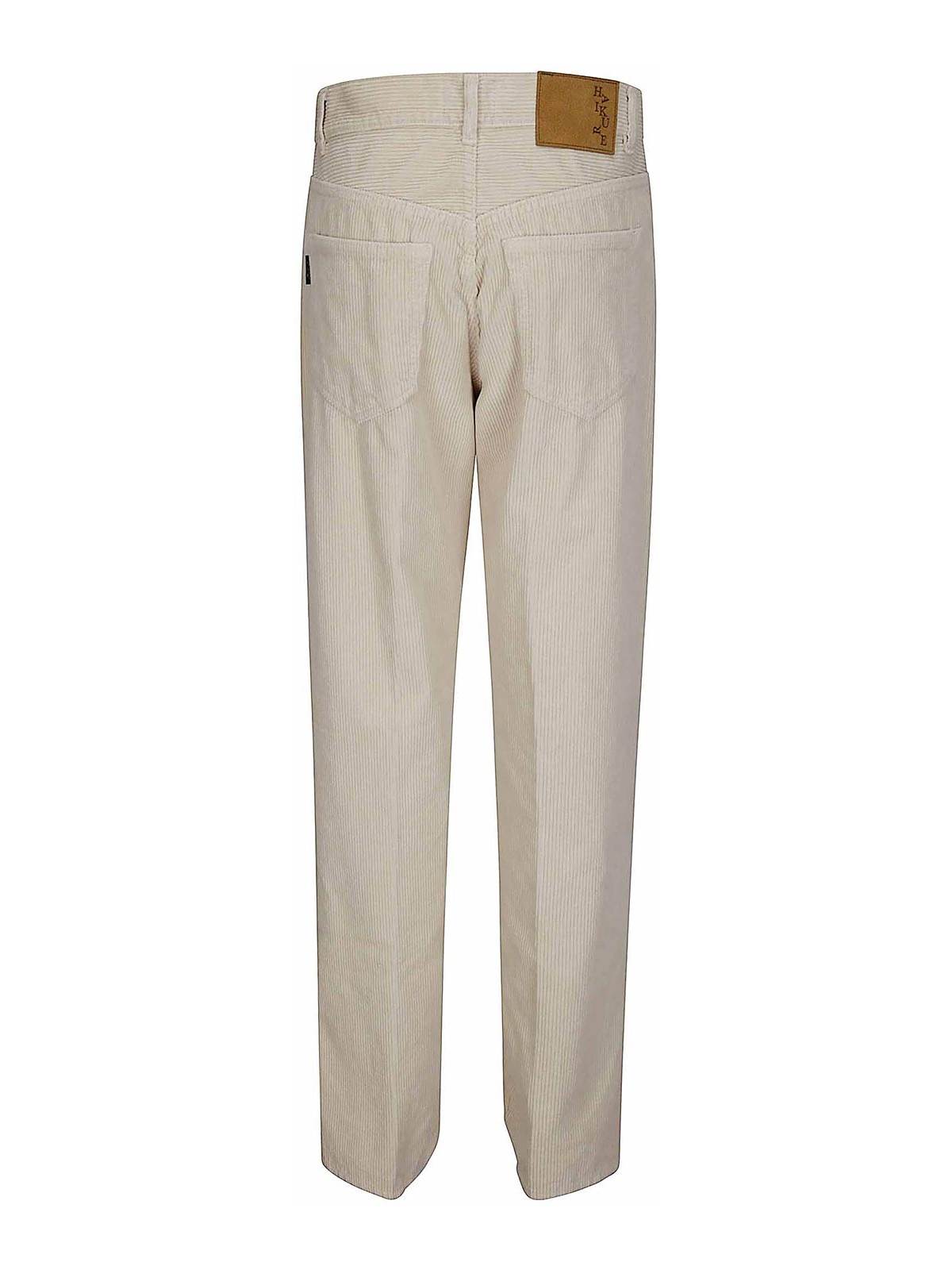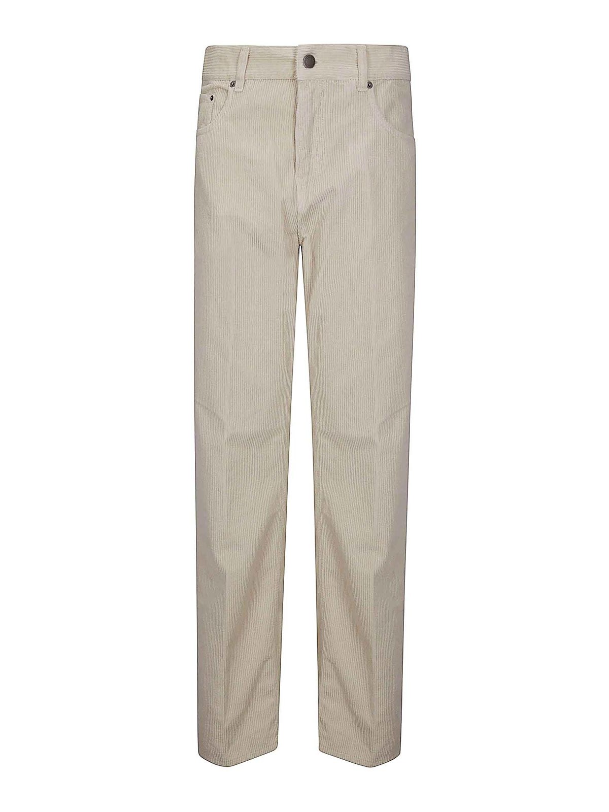 Pantaloni taglio jeans in velluto a coste, cinque tasche, vita regolare, gamba dritta.