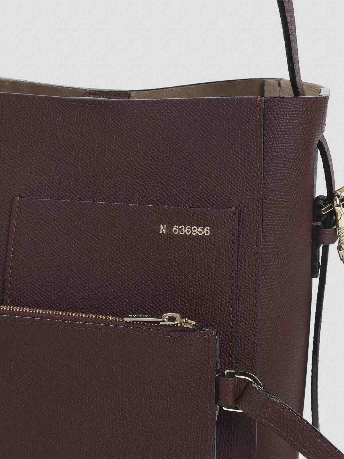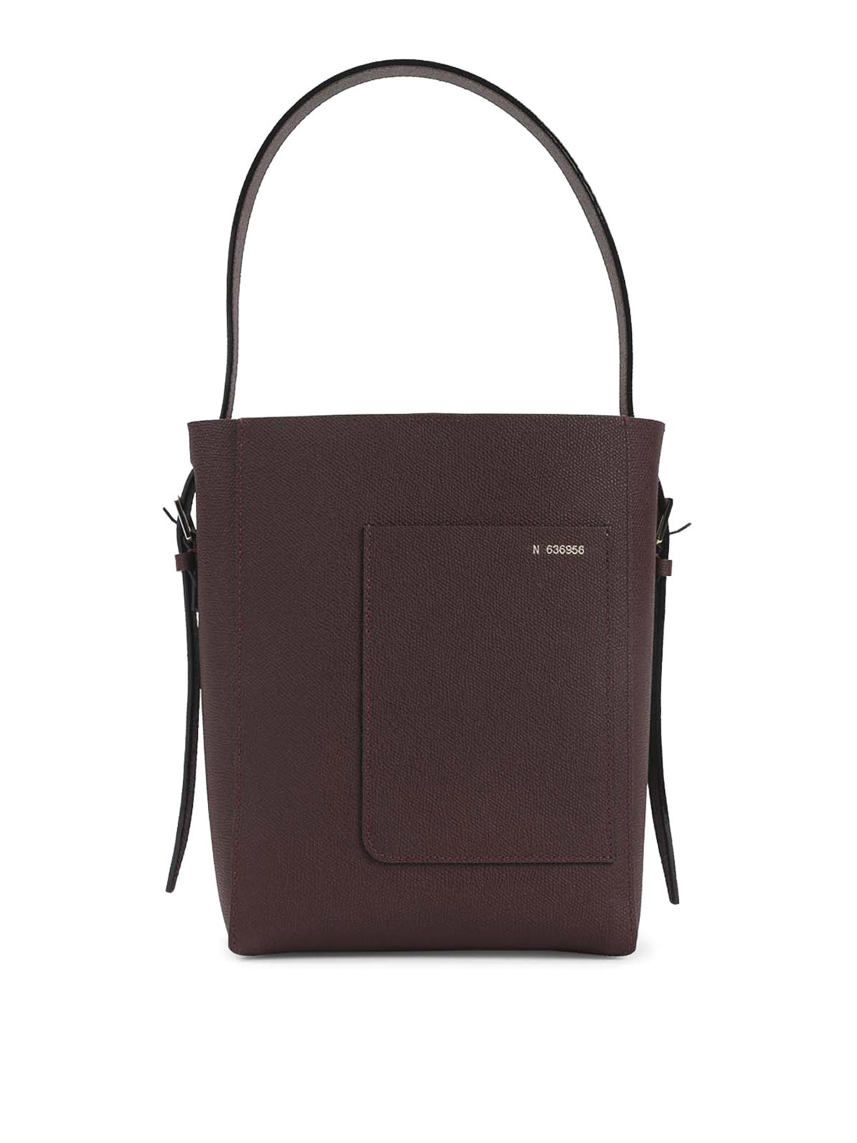 Borsa a secchiello piccola Valextra in pelle di vitello amaranto. borsa a tracolla in pura pelle di vitello amaranto, manico superiore regolabile, tasca frontale, numero frontale color argento, tasca interna staccabile con zip, uno scomparto principale. progettazione del secchio.
