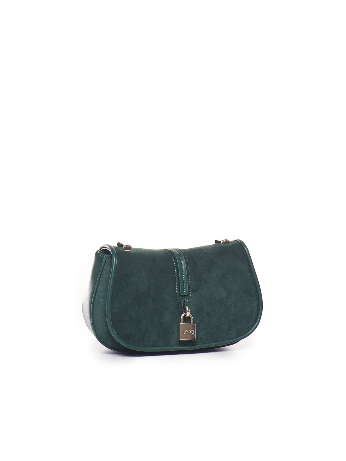 Crossbody in grana con lucchetto personalizzato. Chiusura con bottone a scatto e tracolla scorrevole per una doppia portabilità.