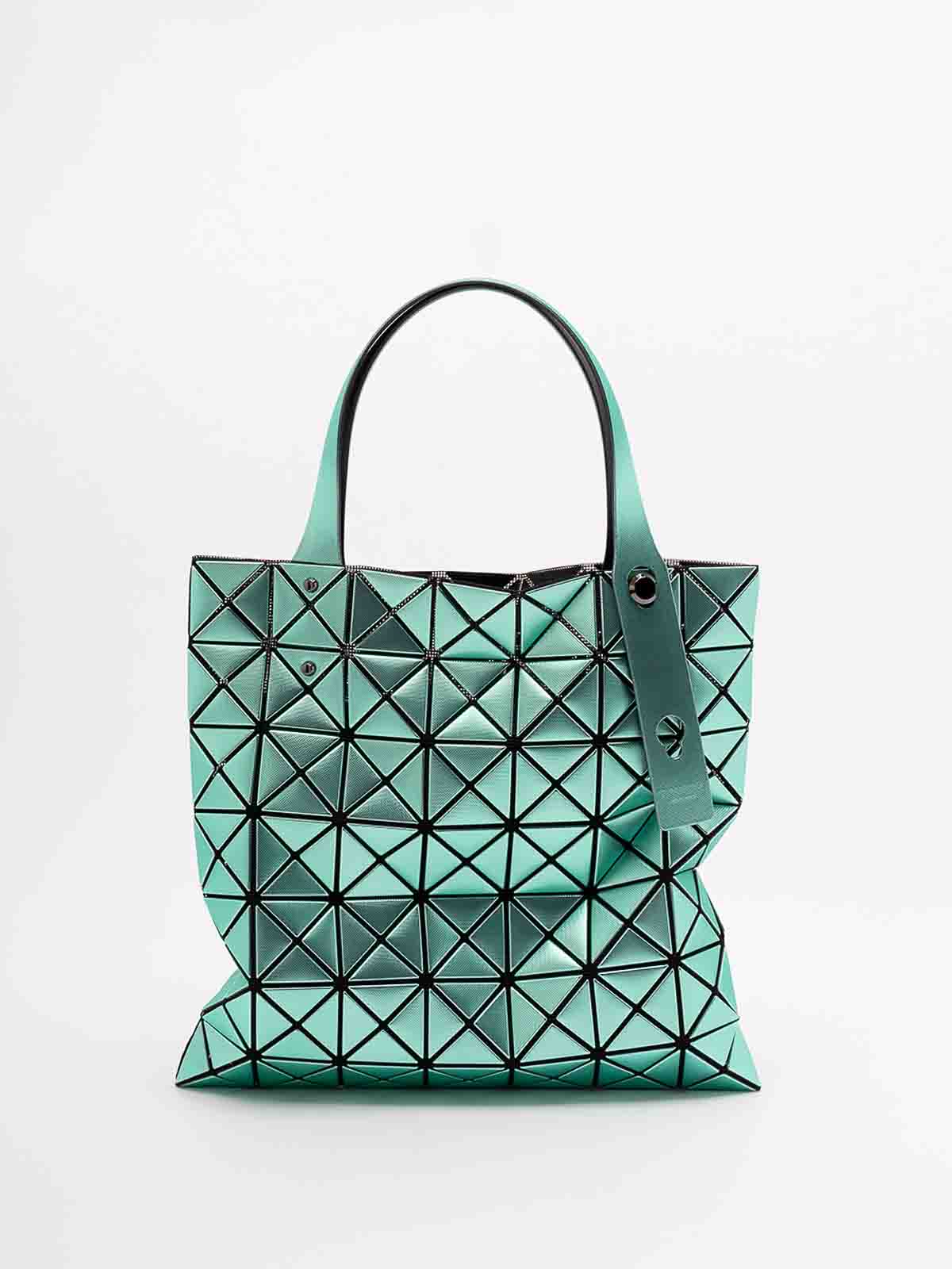 Verde chiaro, finitura metallica, motivo triangolare, manici superiori, cintura regolabile