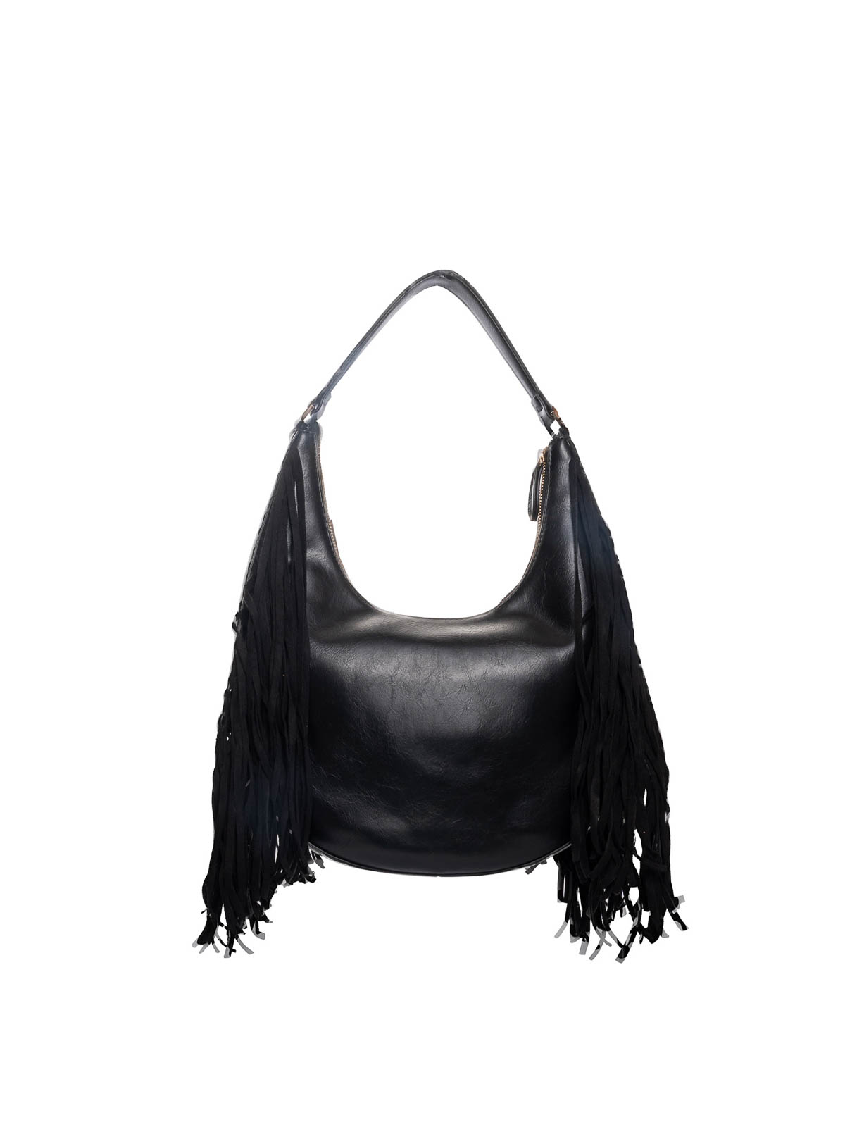 TWINSET: borse a spalla - Borsa Hobo con frange e logo Oval-T