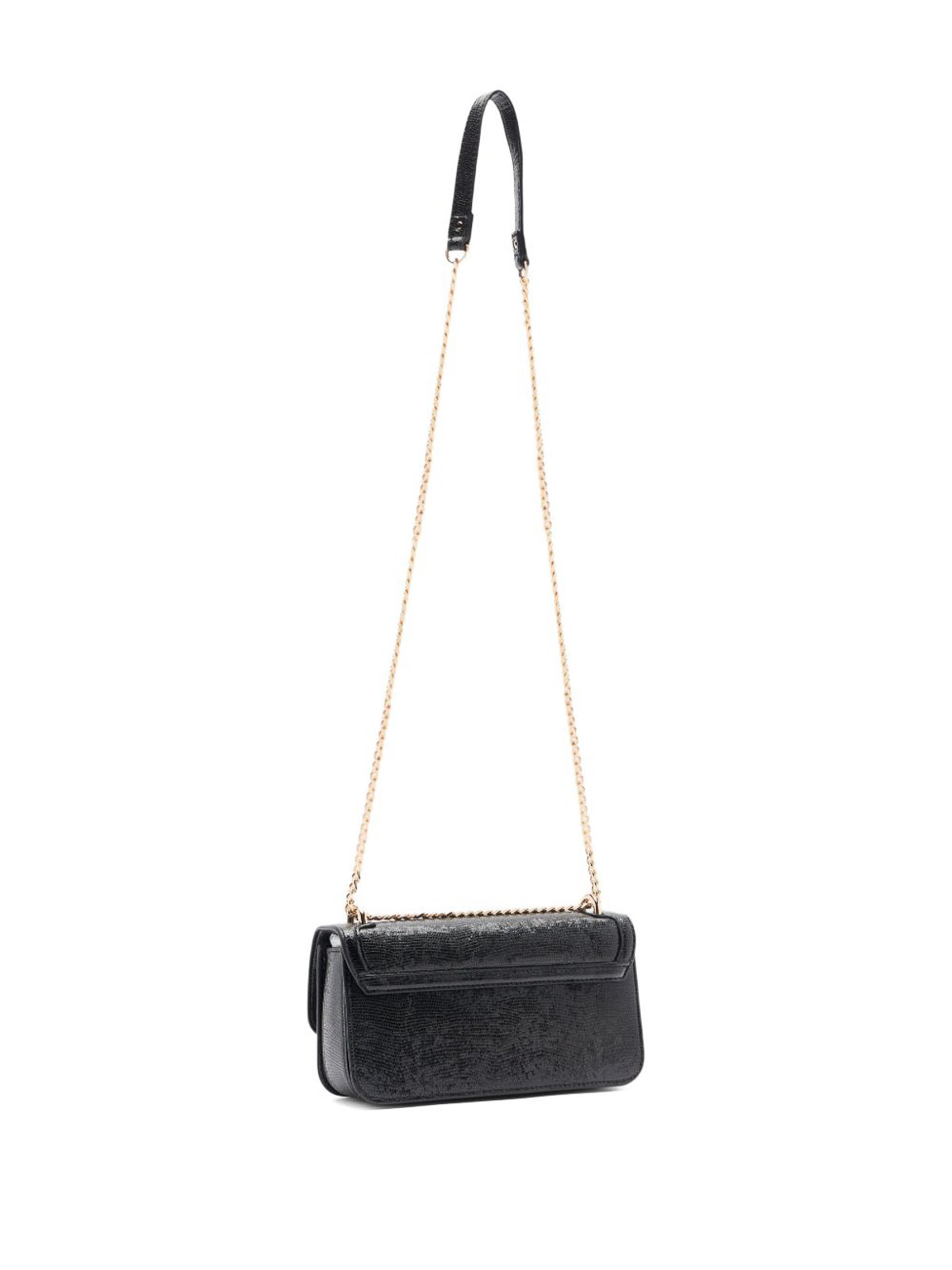 Tasca con zip e tracolla in catena con logo lettering effetto lucertola nera