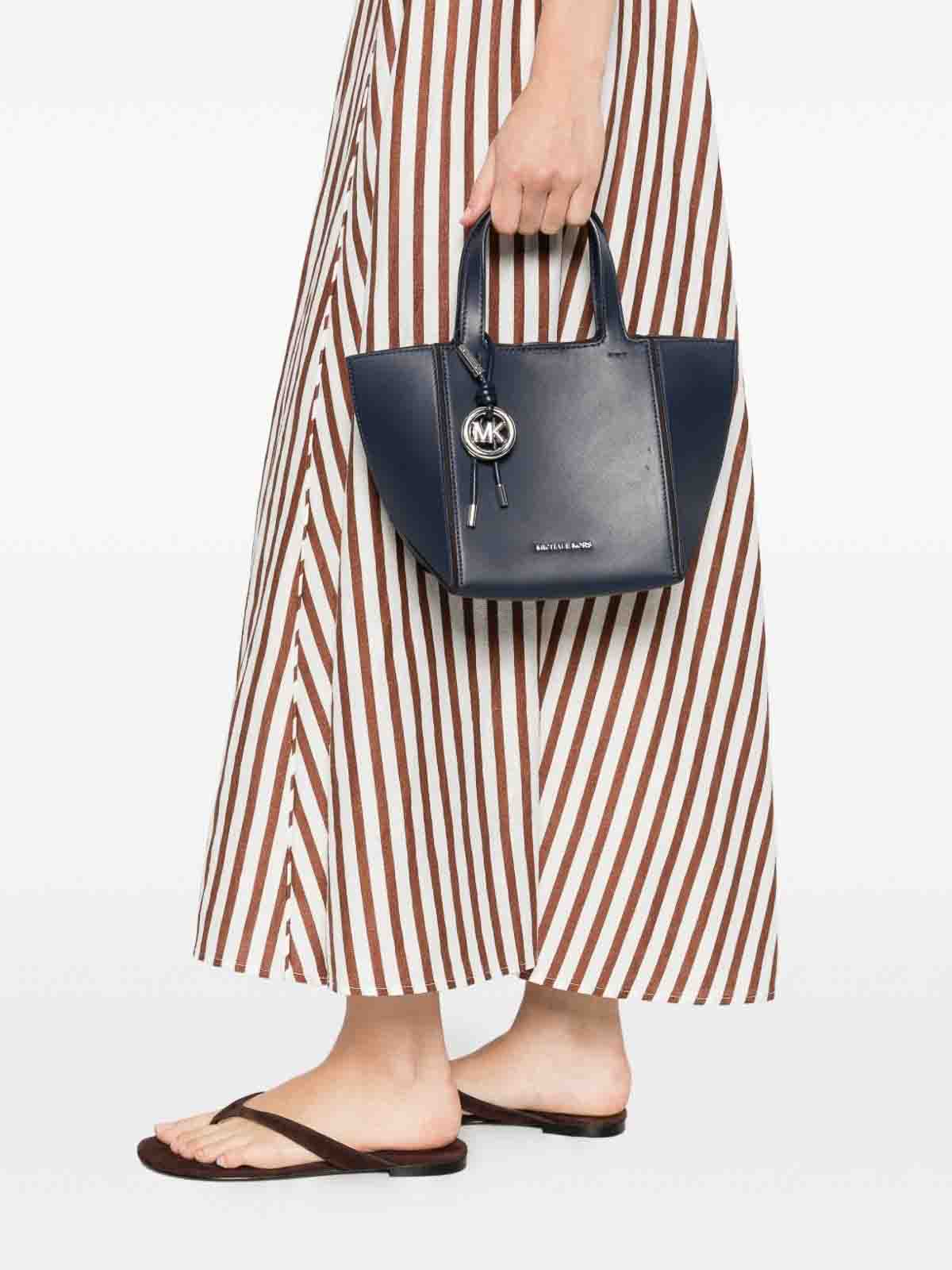 Doppio top blu navy, ciondolo con logo tracolla regolabile e staccabile, hardware tono magnetico, aggancia questo pezzo viene fornito completo di un sacchetto protettivo per la polvere