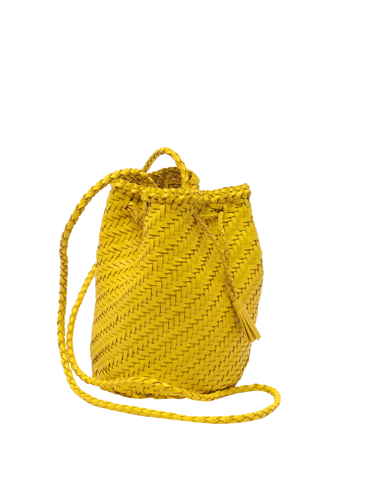 Dragon diffusion borsa a secchiello con doppio salto giallo pom pom chiusura coulisse cinturino