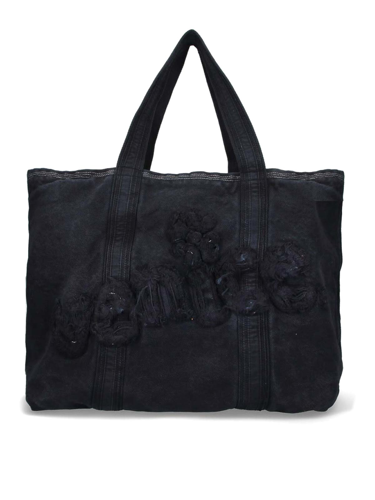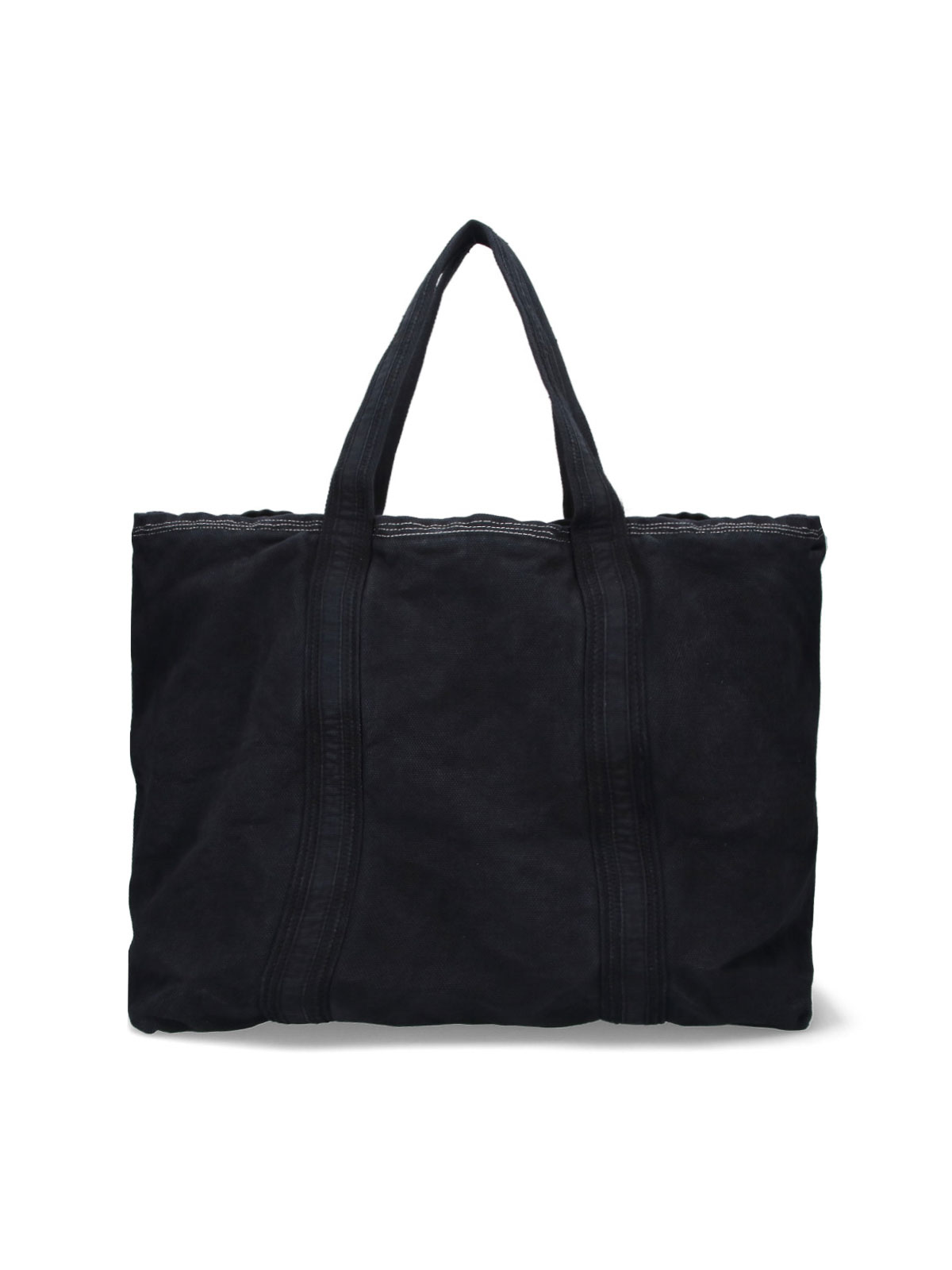 Borsa tote logo erl, in cotone nero, lavaggio usured, due manici superiori, ricamo logo tono su tono fronte, una tasca piatta interna, uno scomparto interno principale.