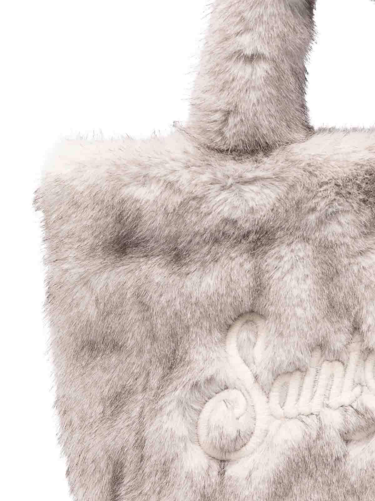 Caratteristiche grigio pelliccia sintetica manici regolabile e rimovibile tasca interna con zip con bottone nascosto logo ricamato