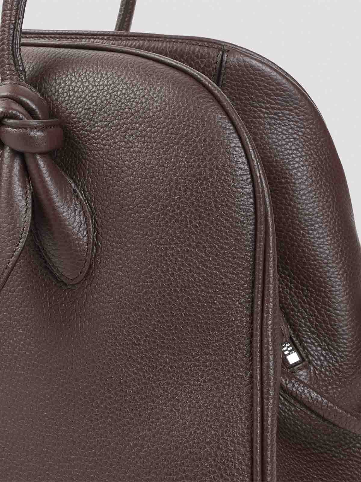 Jacquemus le Grand Turismo Branetto a grana marrone scuro realizzato con manici in cima a grana marrone scuro con prua due, tasca con zip patch e tasca con zip foderata