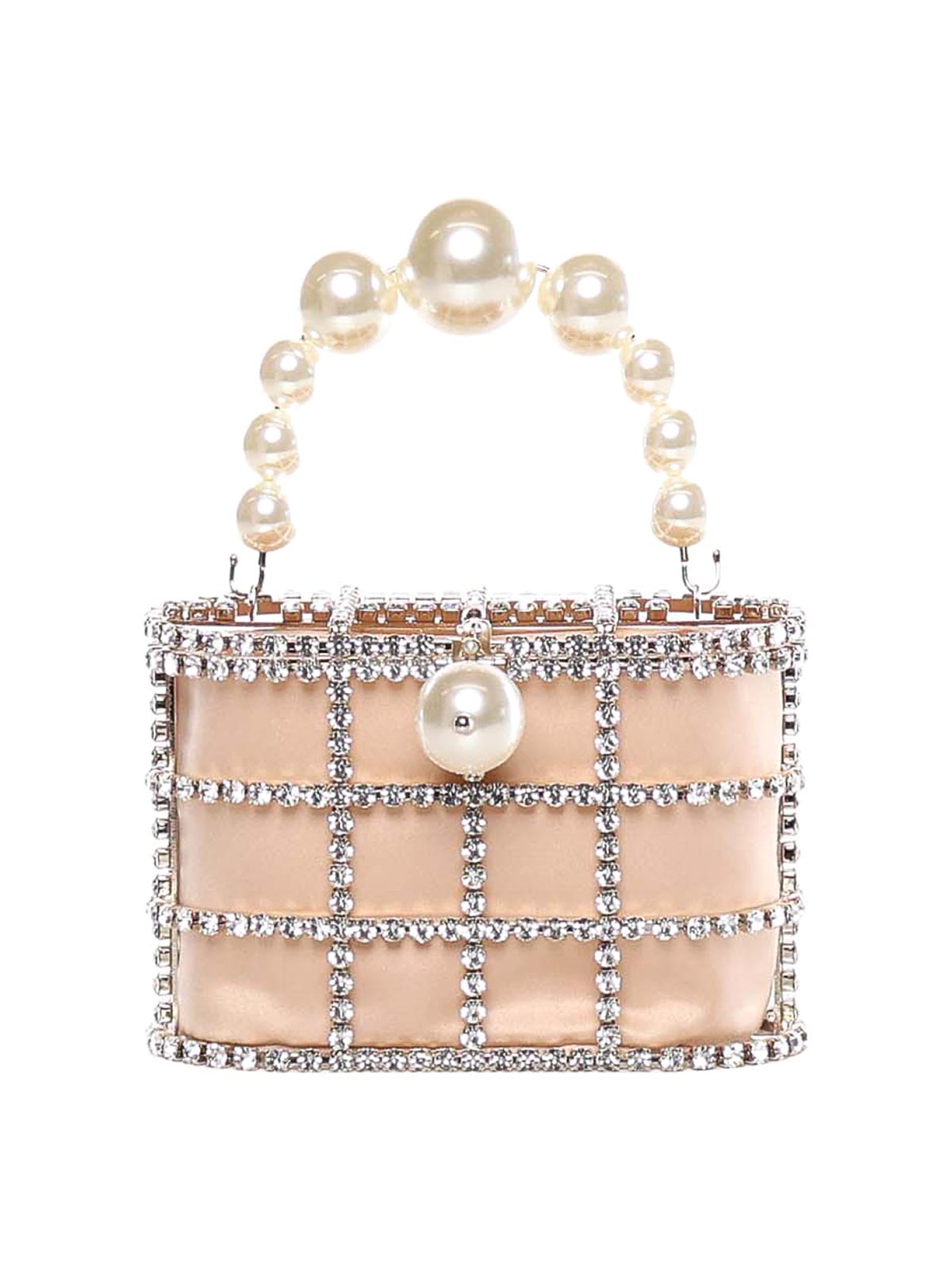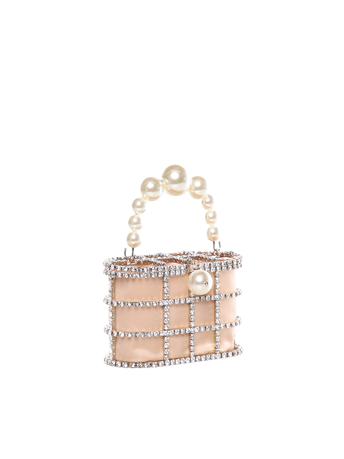 realizzato con cristalli e perle finte su struttura in ottone, fodera in taffetà, made in Italy, dimensioni: 18 x 12 x 9 cm, colore: oro