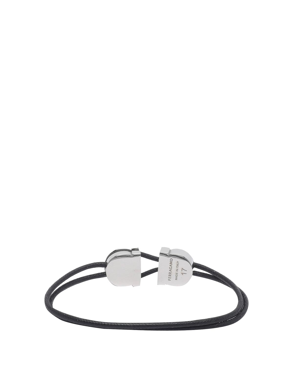 Bracciale Ferragamo gancini nero, chiusura scorrevole, logo