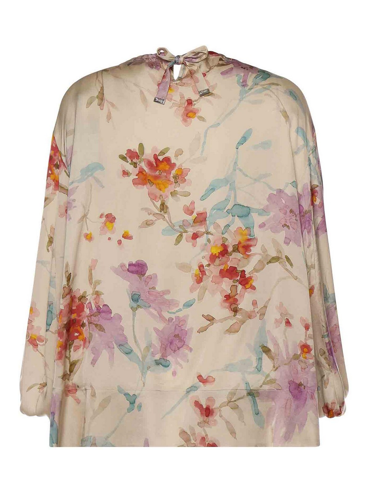realizzato in raso lucido, girocollo, maniche lunghe con polsini elastici, vestibilità comoda, la taglia indicata è 40, made in Italy, colore: multicolor