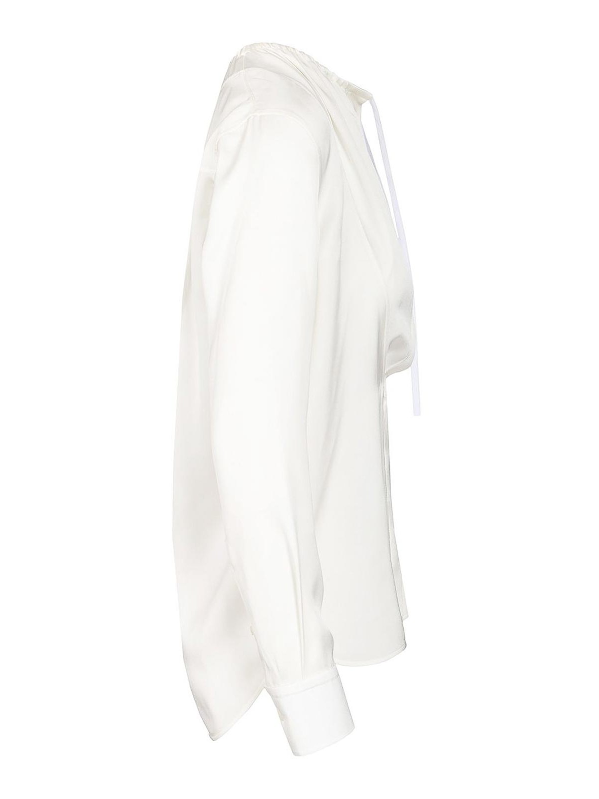 Blusa in raso di seta di loewe, lavato leggero con scollo regolabile con coulisse, vestibilita' rilassata, lunghezza standard, chiusura con bottoni nascosti sul davanti, polsini con bottoni e ricamo anagram applicato sul retro.