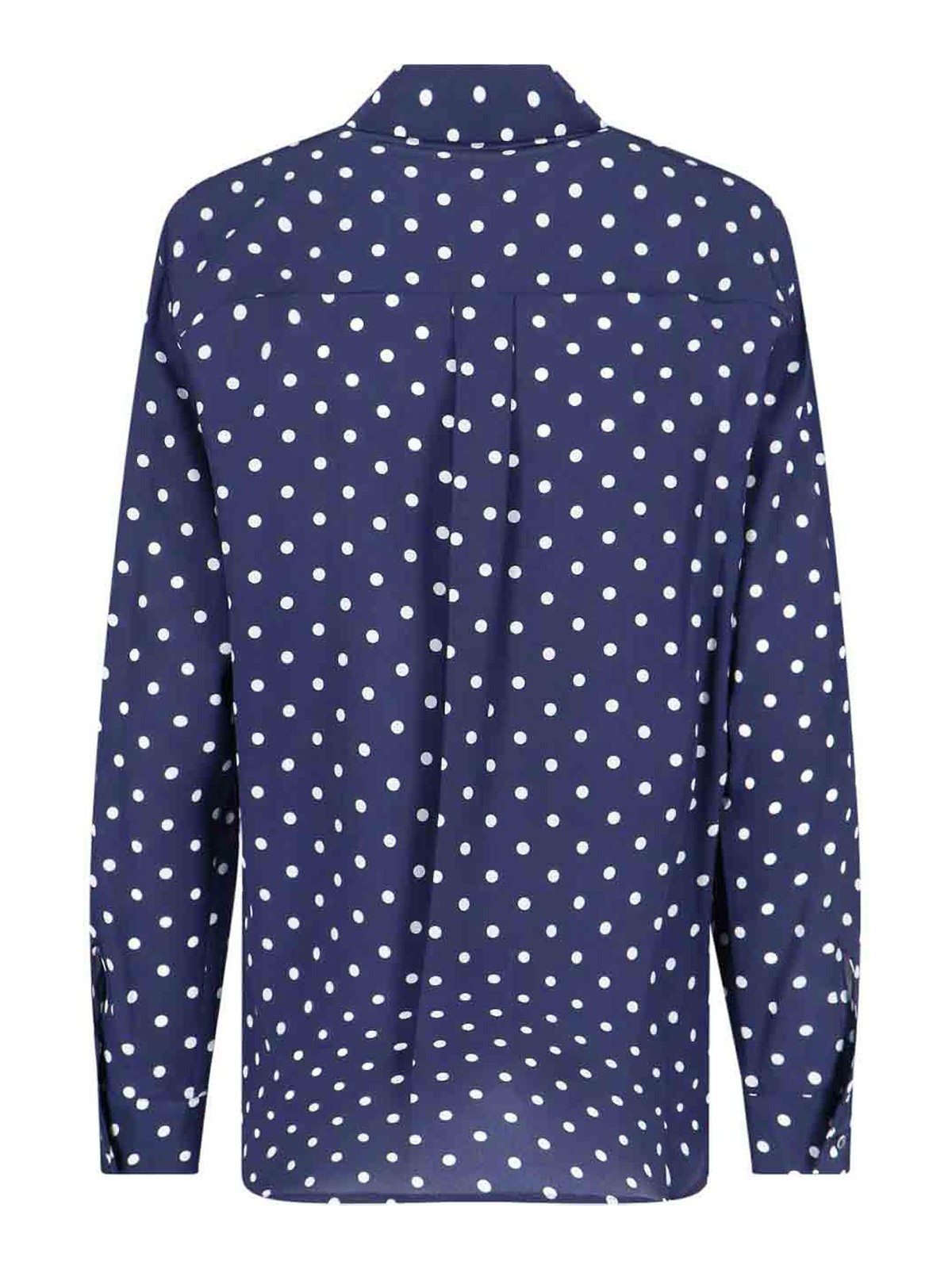 Camicia a pois p.a.r.o.s.h., in seta blu, motivo pois all-over, colletto classico, chiusura bottoni, bottoni polsini, orlo dritto.
