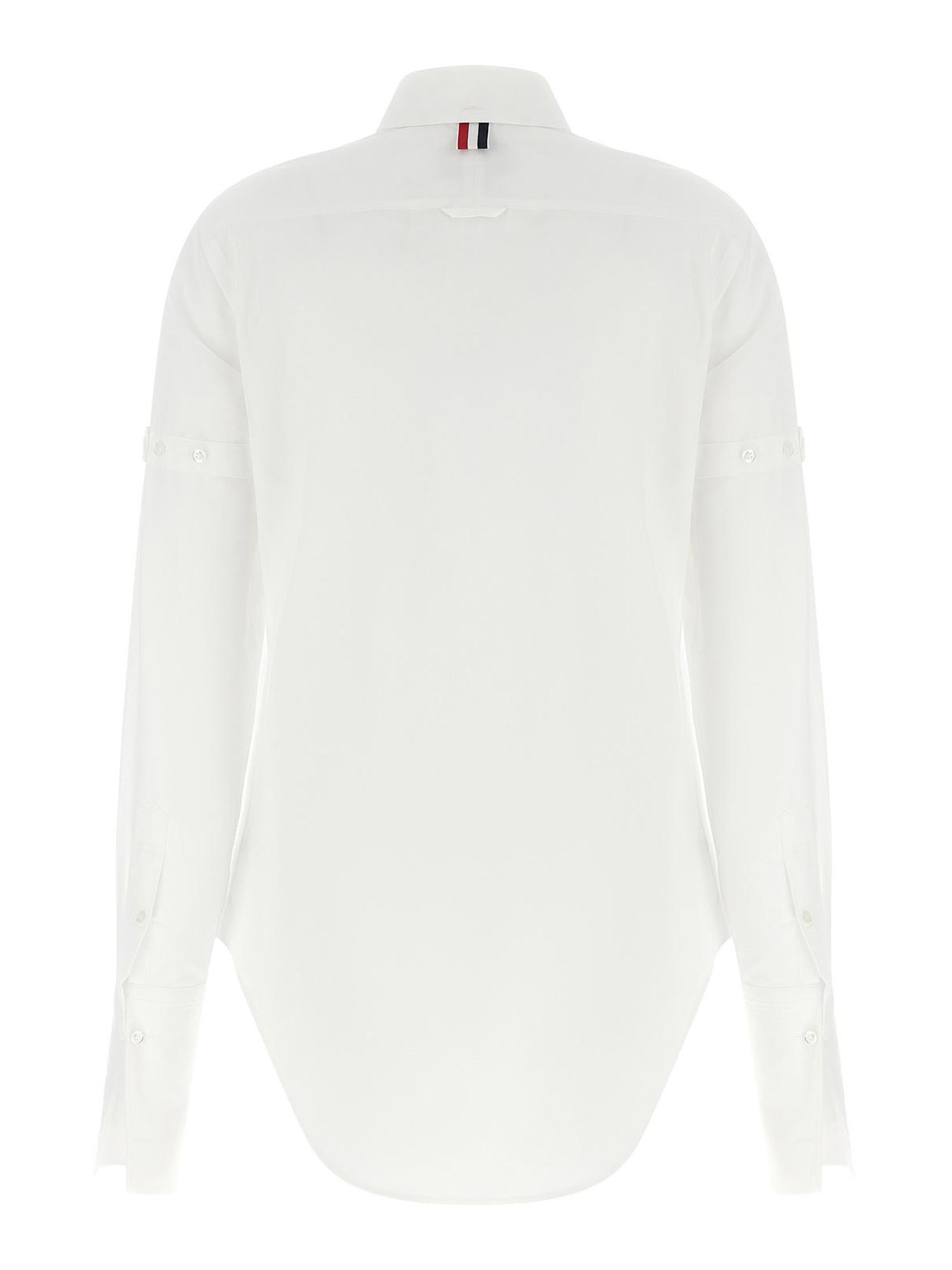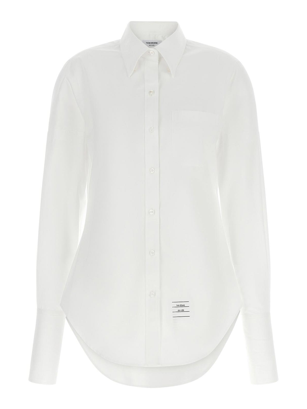 Camicia in cotone, modello button down, taschino, patch logo e chiusura con bottoni in madreperla sul davanti, maniche lunghe con maxi polsino francese e maniche risvoltabili, fondo stondato.