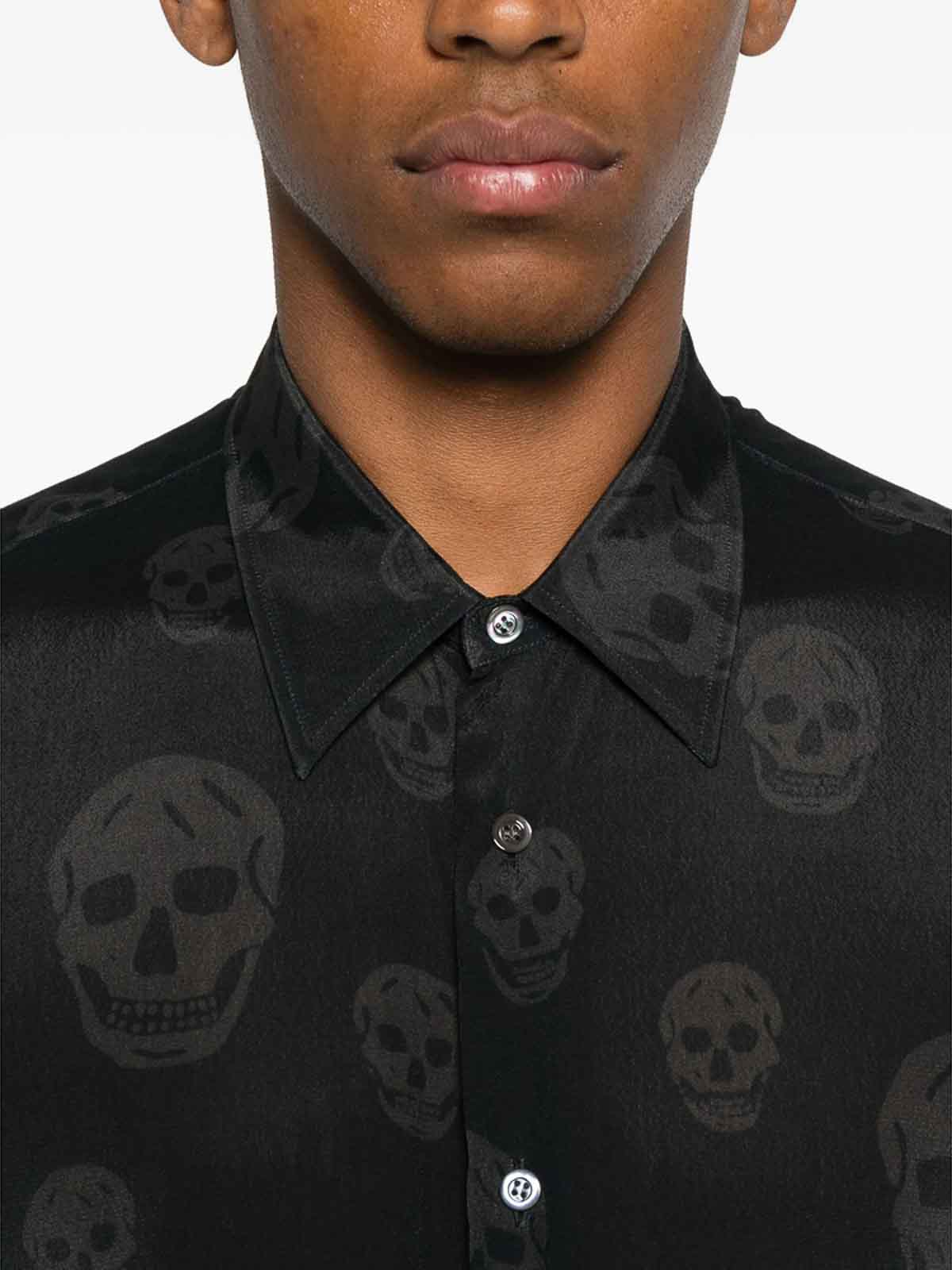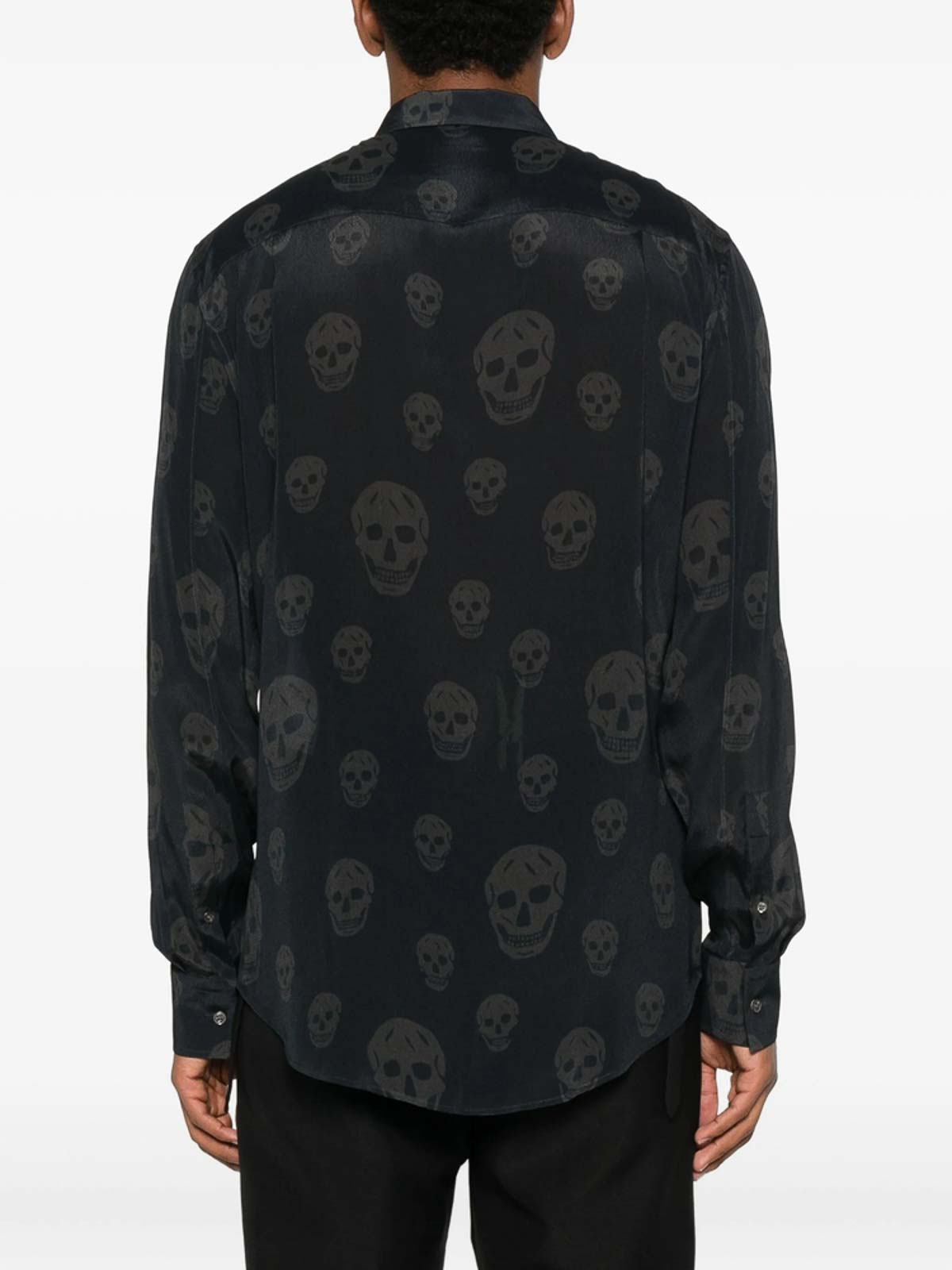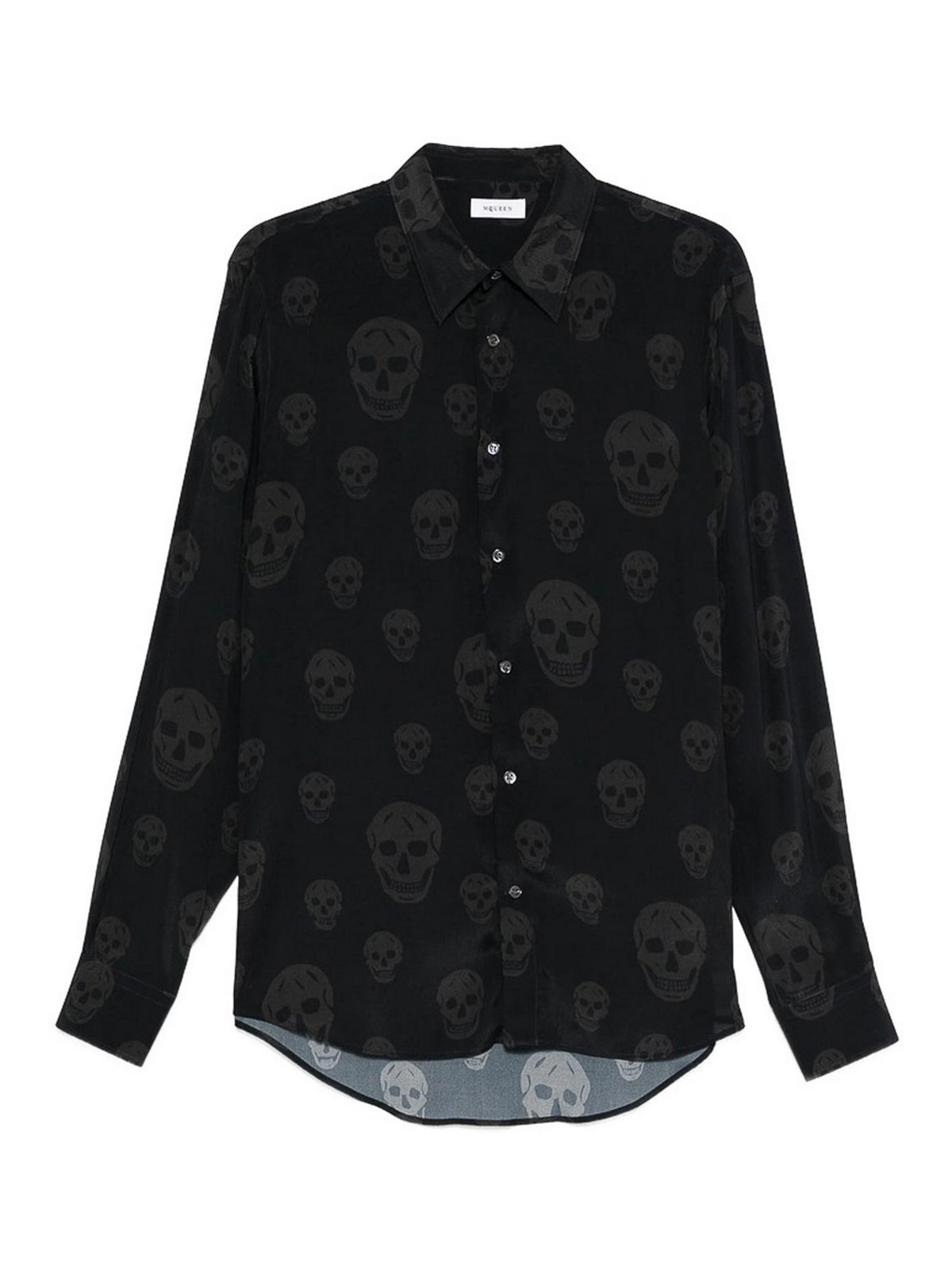 Cranio nero stampa a maniche lunghe un orlo curvo