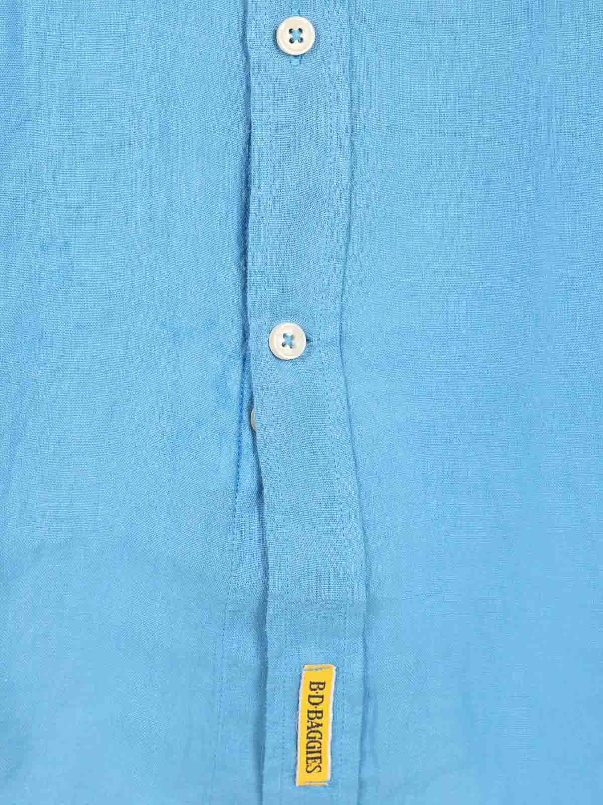 con fissaggio sul pulsante frontale e piccola etichetta cucita sull'orlo