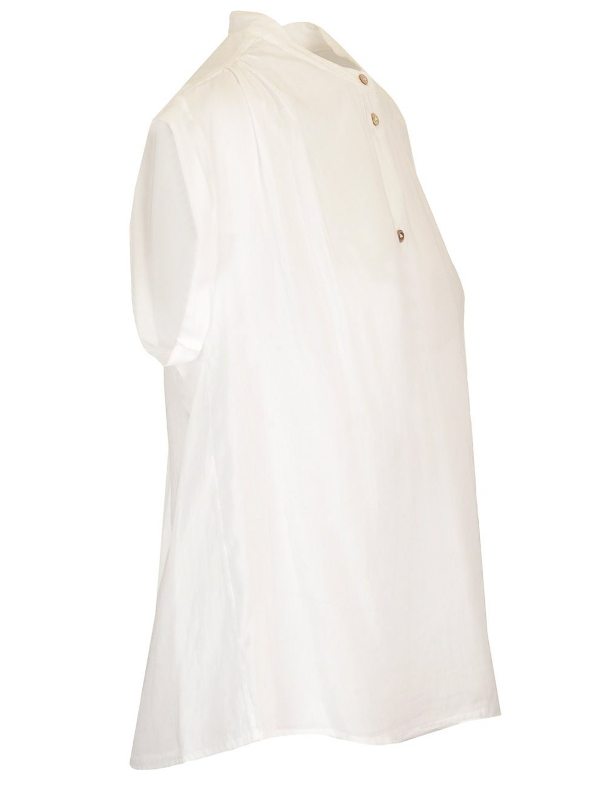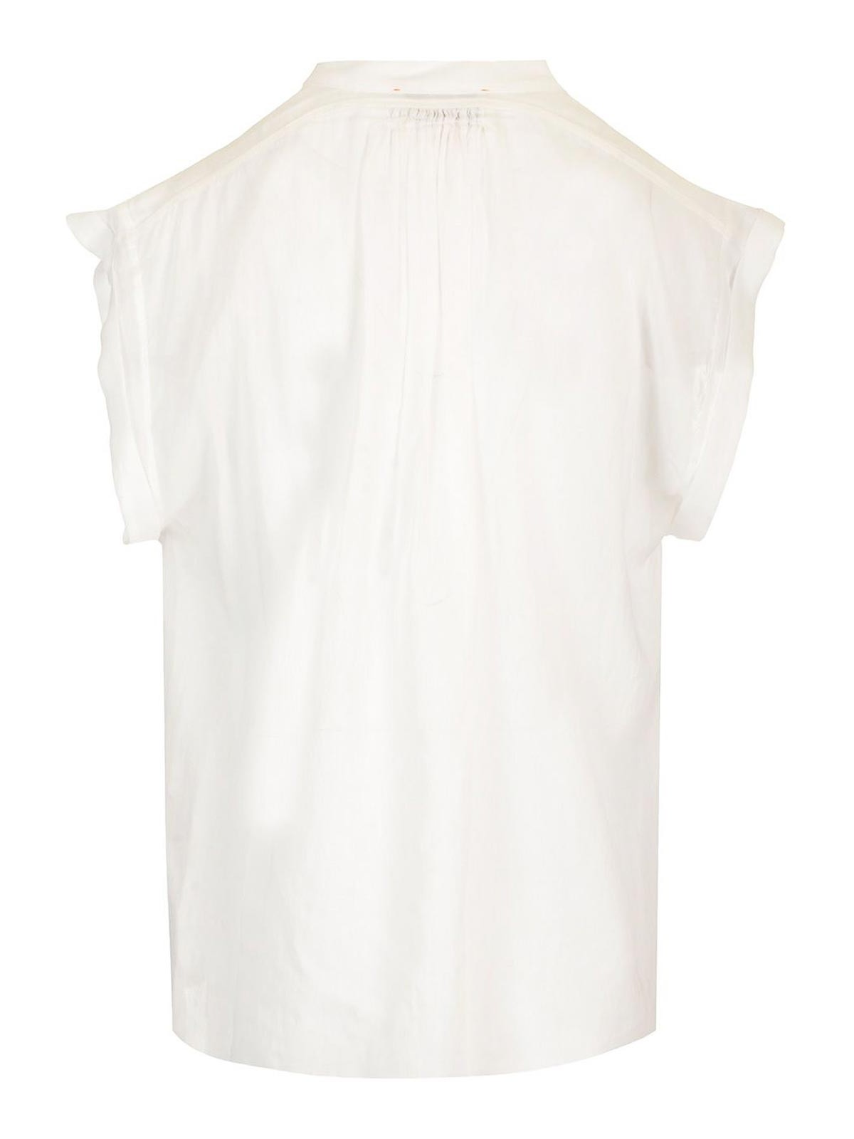 Camicia bianca senza maniche di Forte_Forte in cotone e seta Voile, fissaggio anteriore con bottoni visibili, collare mandarino.