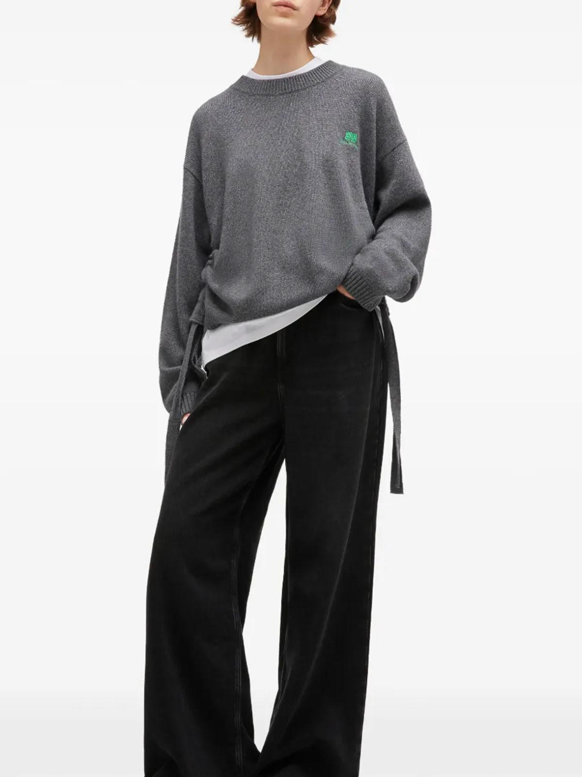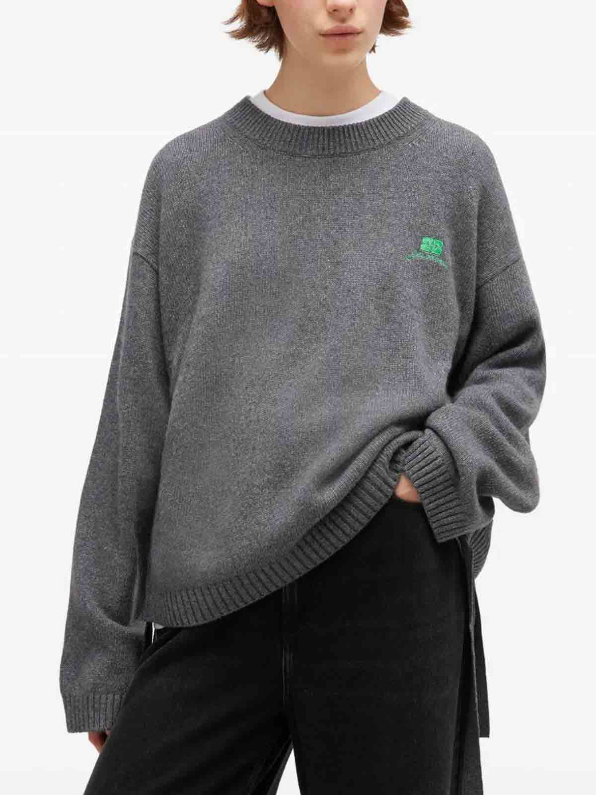 Girocollo, maniche lunghe, dettagli in pizzo laterali, logo ricamato sul petto. composizione 60% lana, 20% viscosa, 20% viscosa (fatto con circulose)