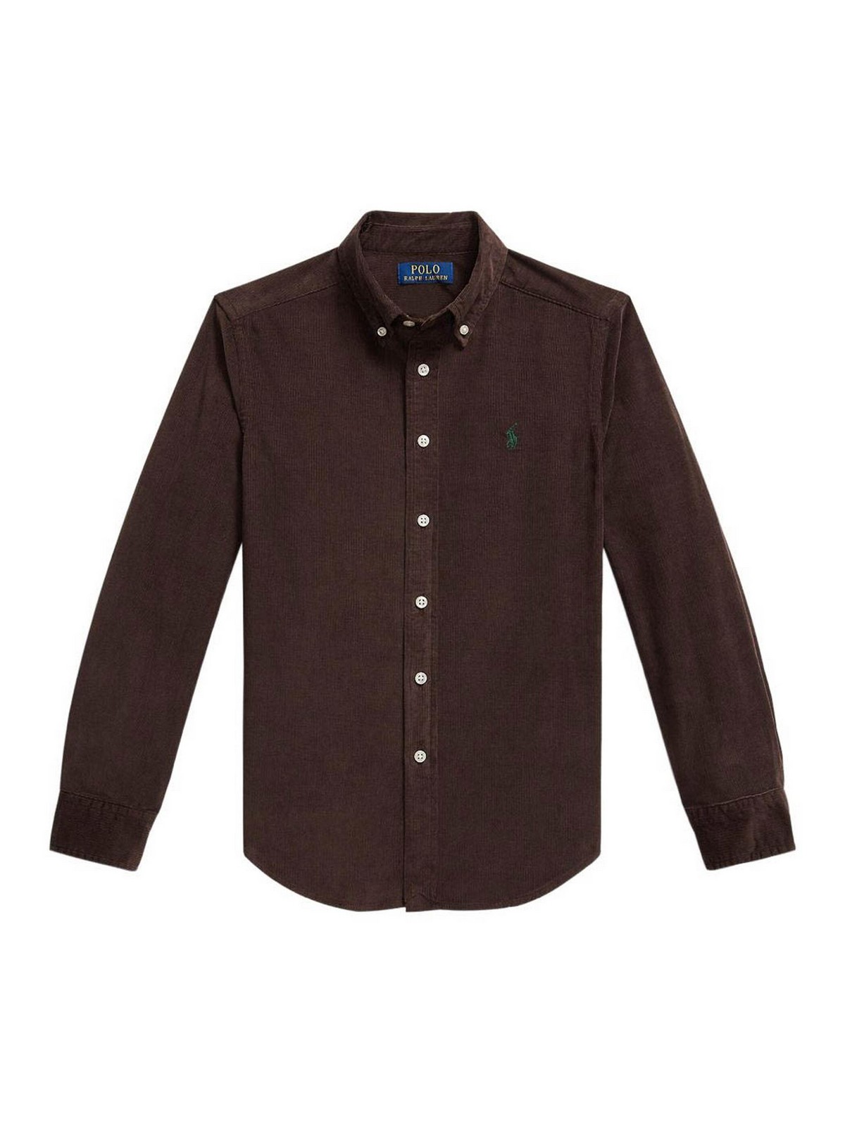 Polo Ralph Lauren Boys 'Brown Shirt con logo ricamato