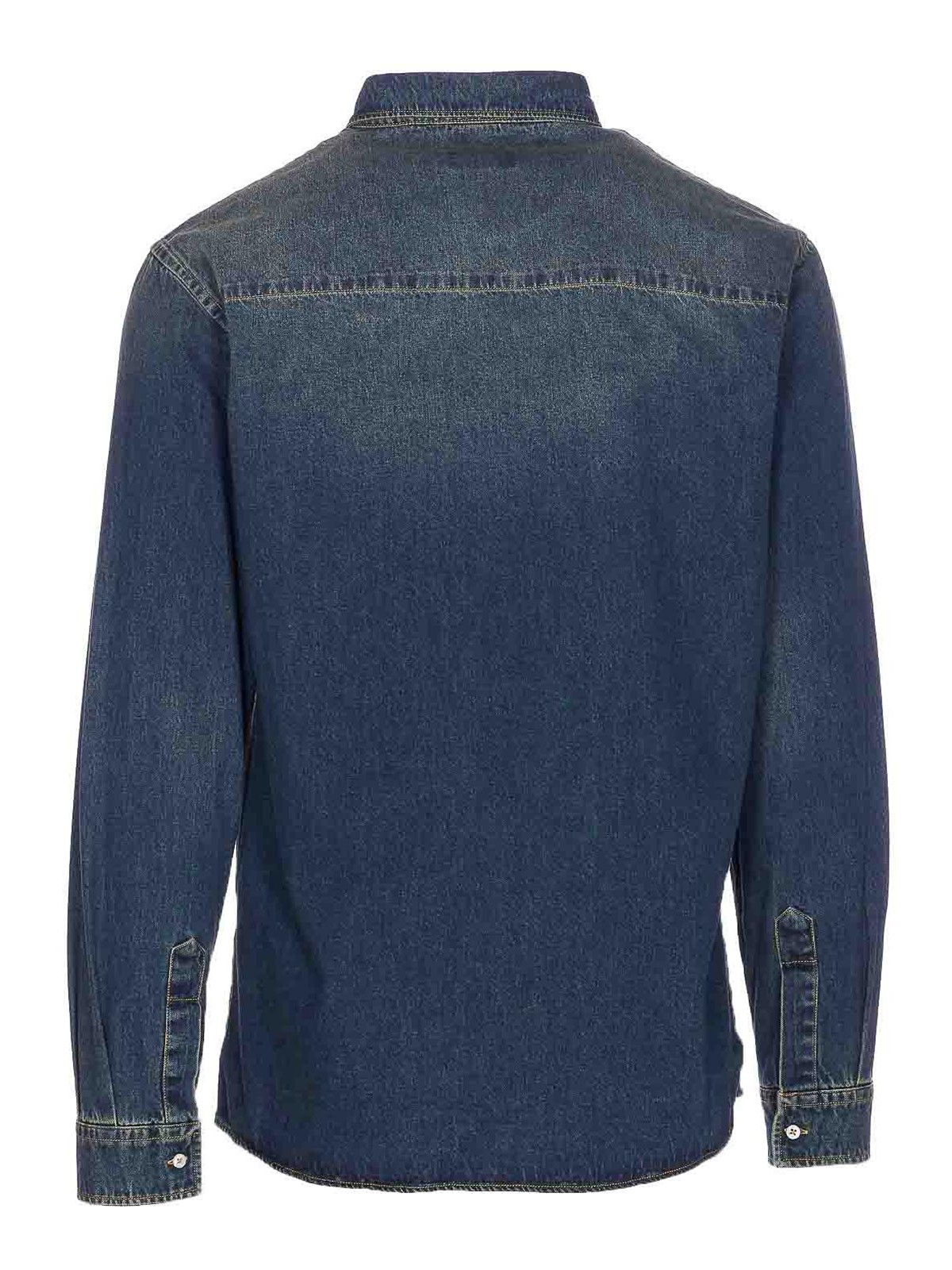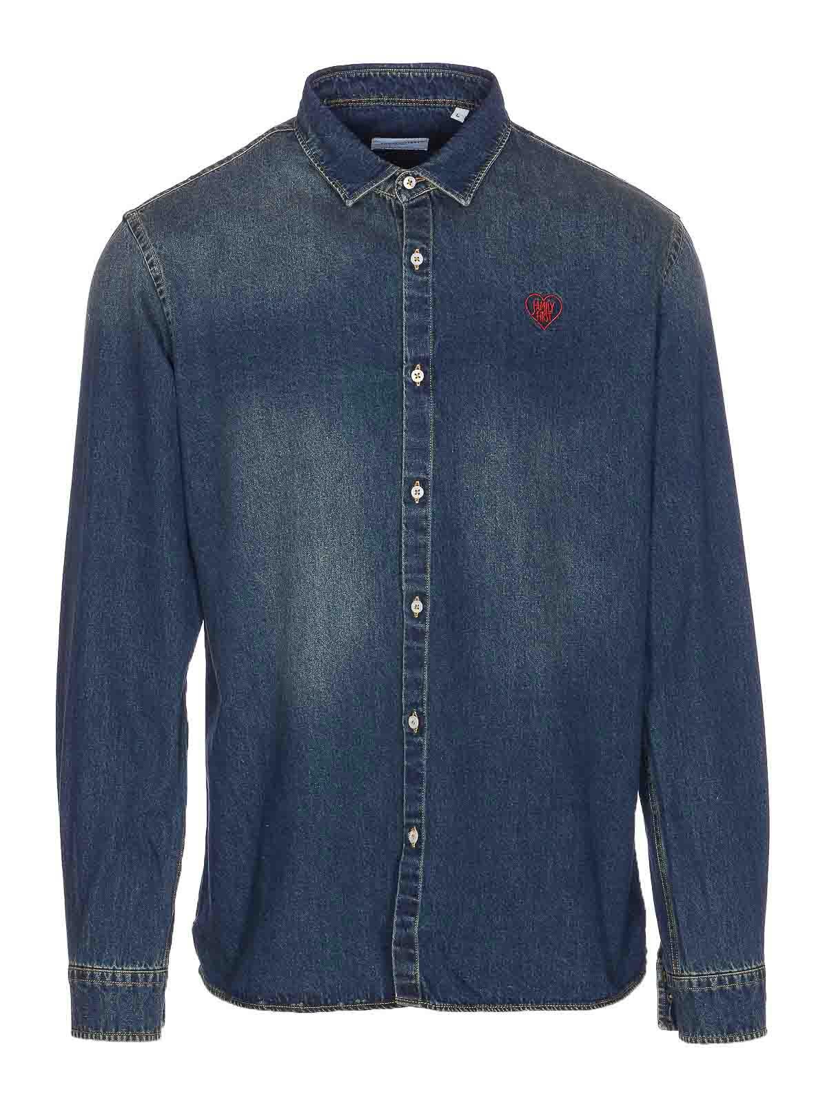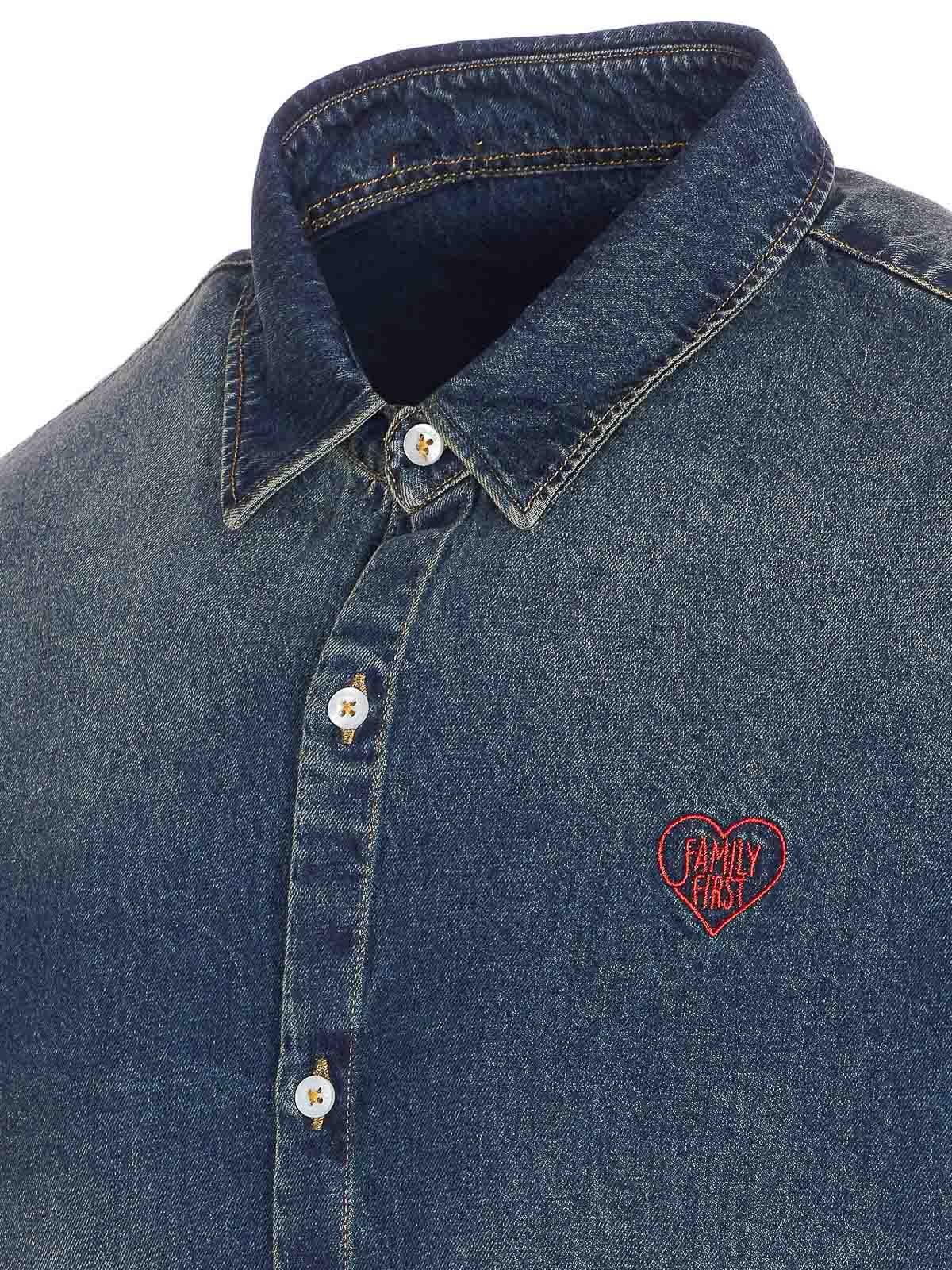 Famiglia Primo pulsante per camicia di denim milano pulsante a maniche lunghe sul cuore ricamato a cuffia sul