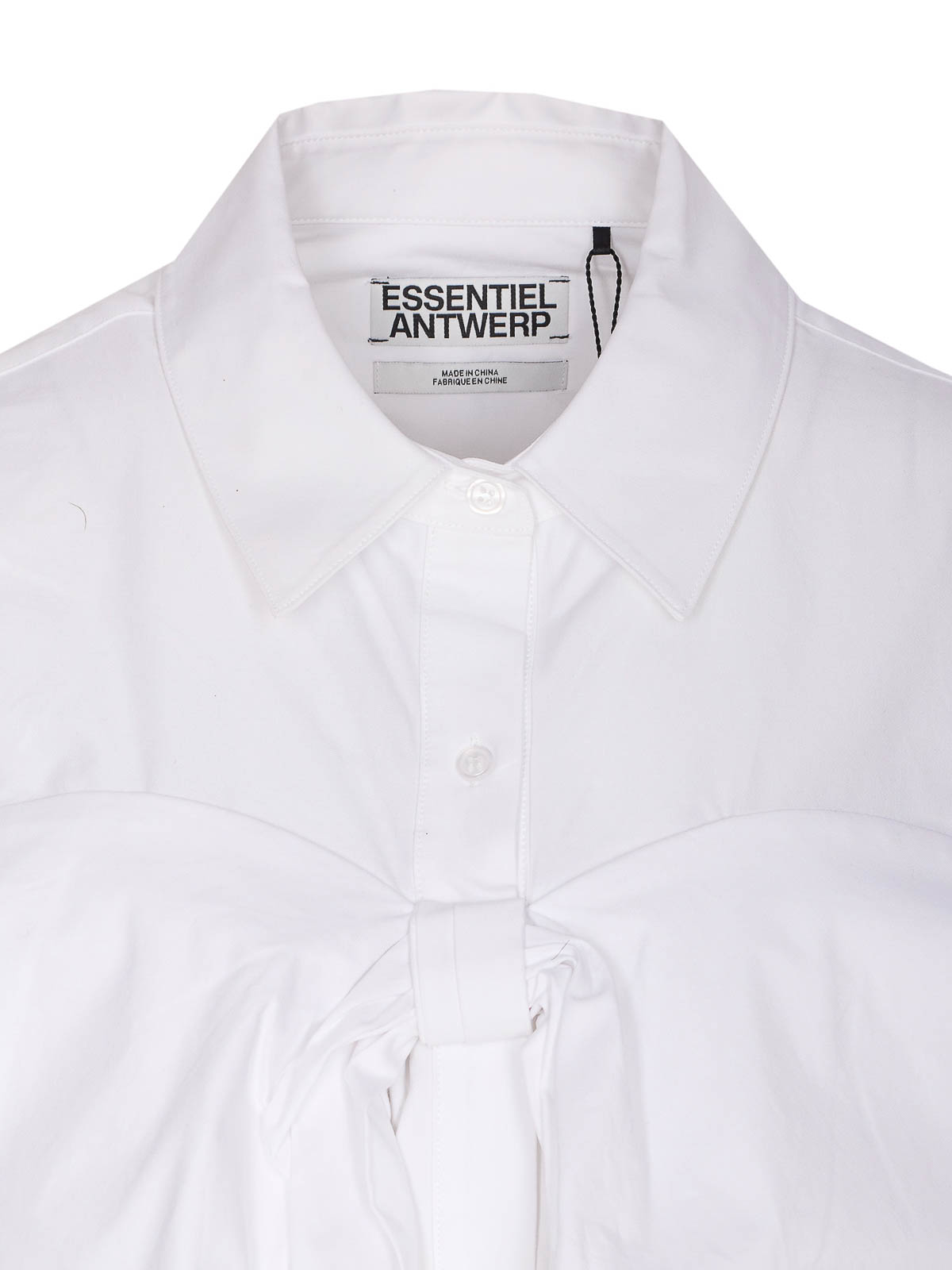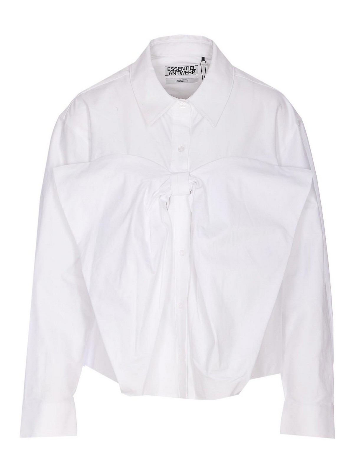 Camicia Essentiel Antwerp bianca ibow, collo regolare, chiusura con bottoni, dettaglio fiocco, maniche lunghe, polsini con bottoni