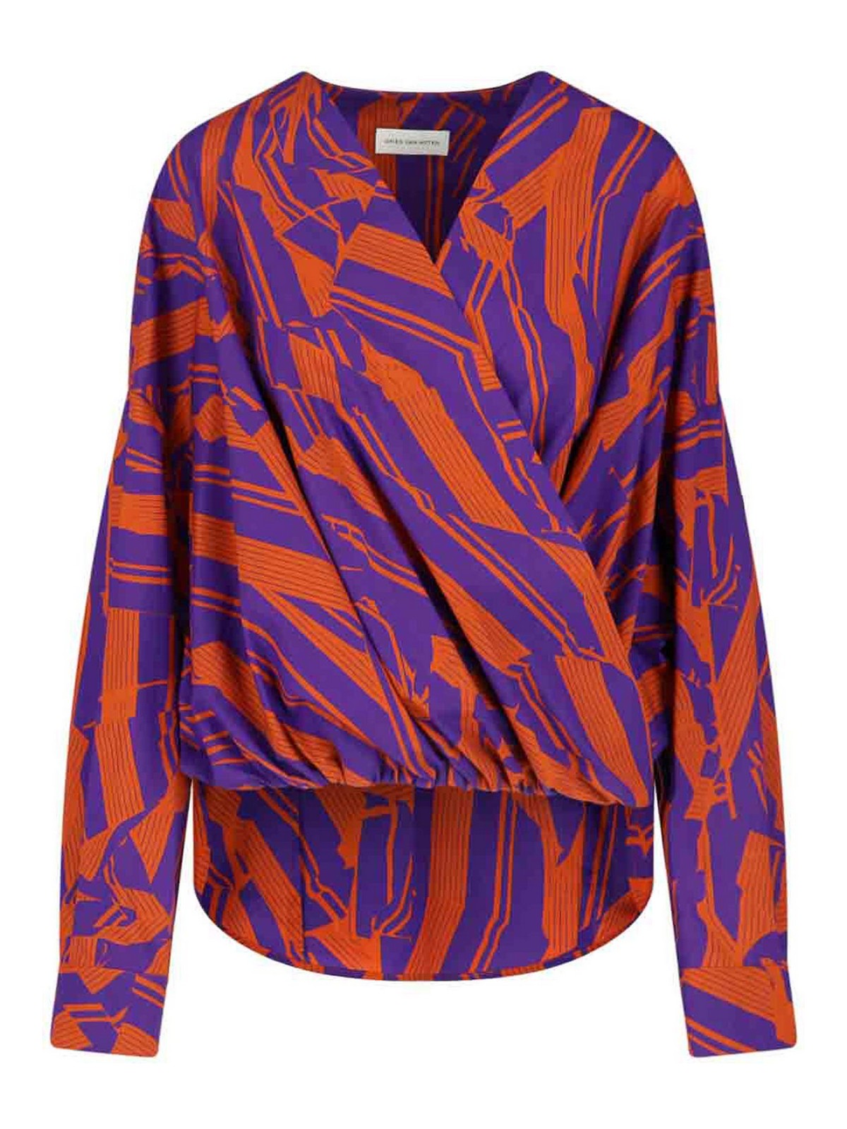 Camicia in cotone dries van noten, arancione, motivo stampato all-over, scollo a v, maniche lunghe, arricciata fronte, orlo curvo retro.