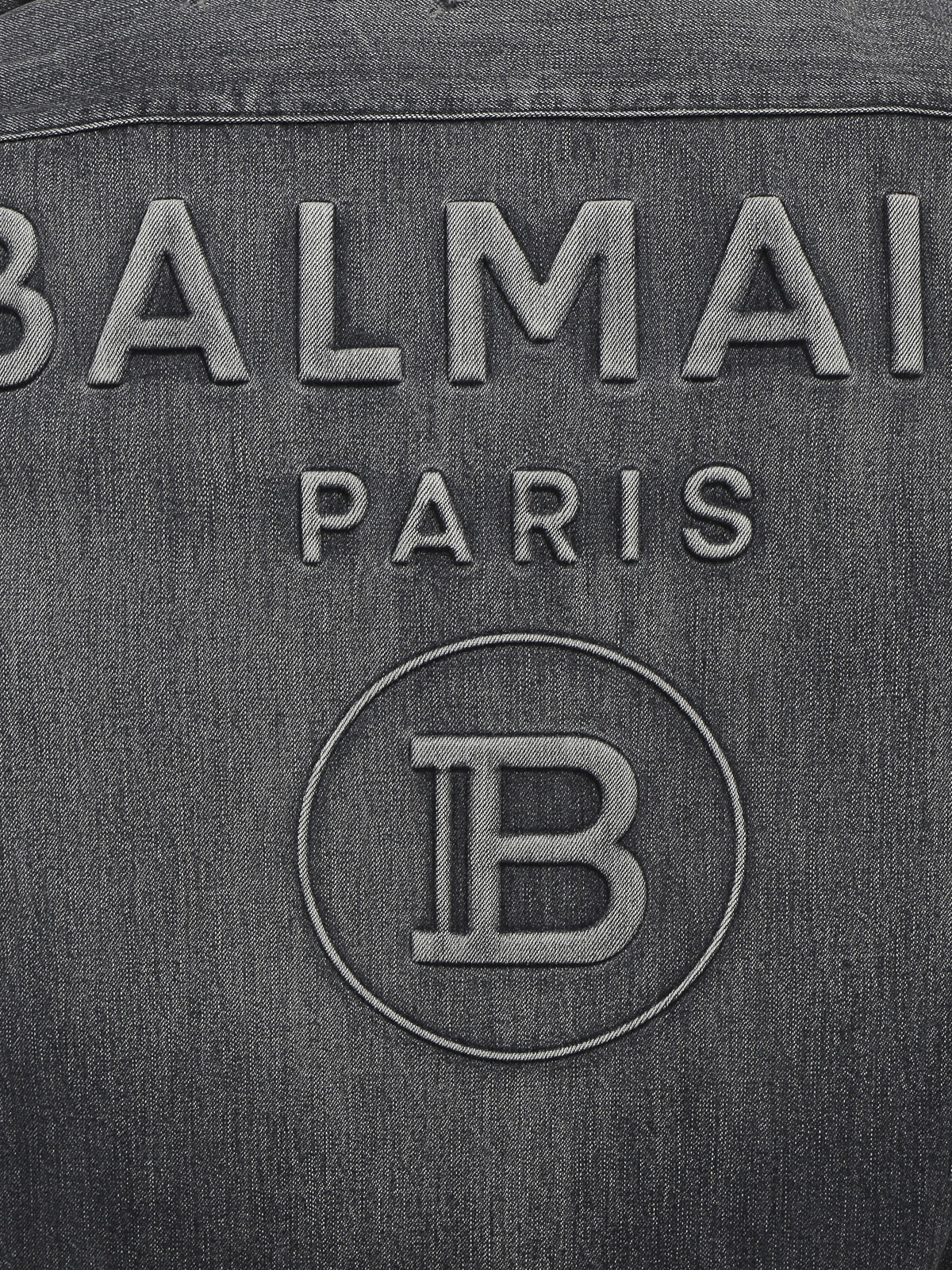 Camicia in denim con chiusura con bottoni automatici logati, due tasche con bottoni e frange al fondo.