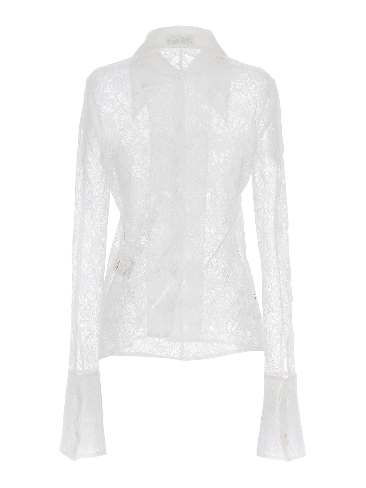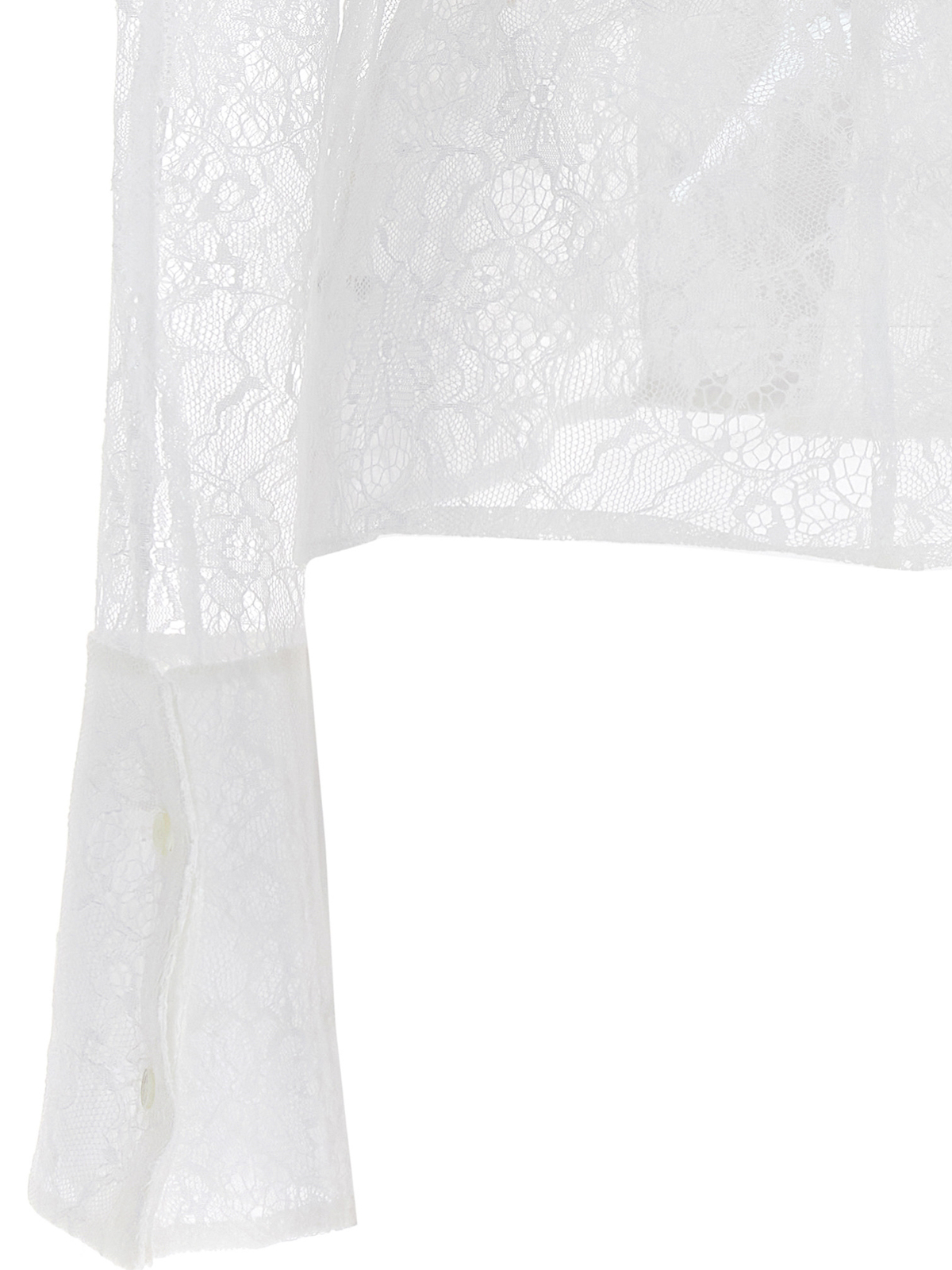 Camicia in pizzo trasparente con chiusura a bottoni e maniche lunghe con risvolto