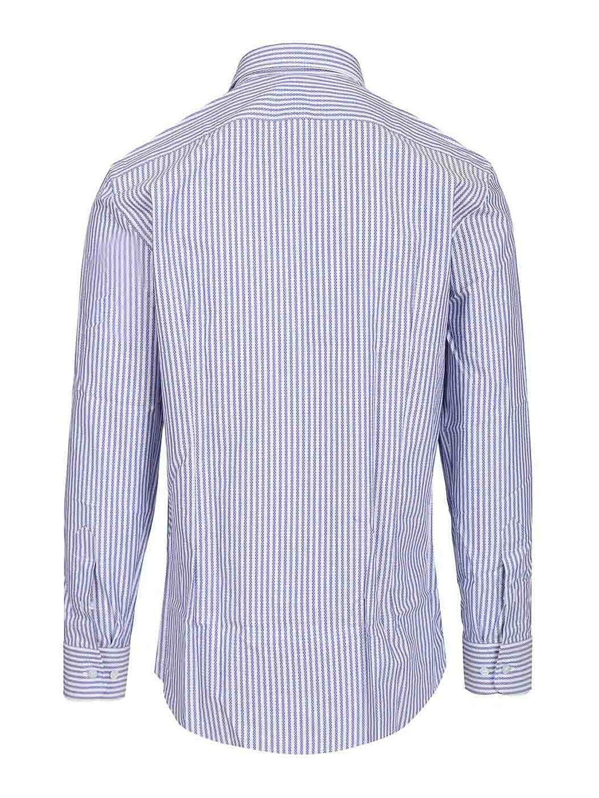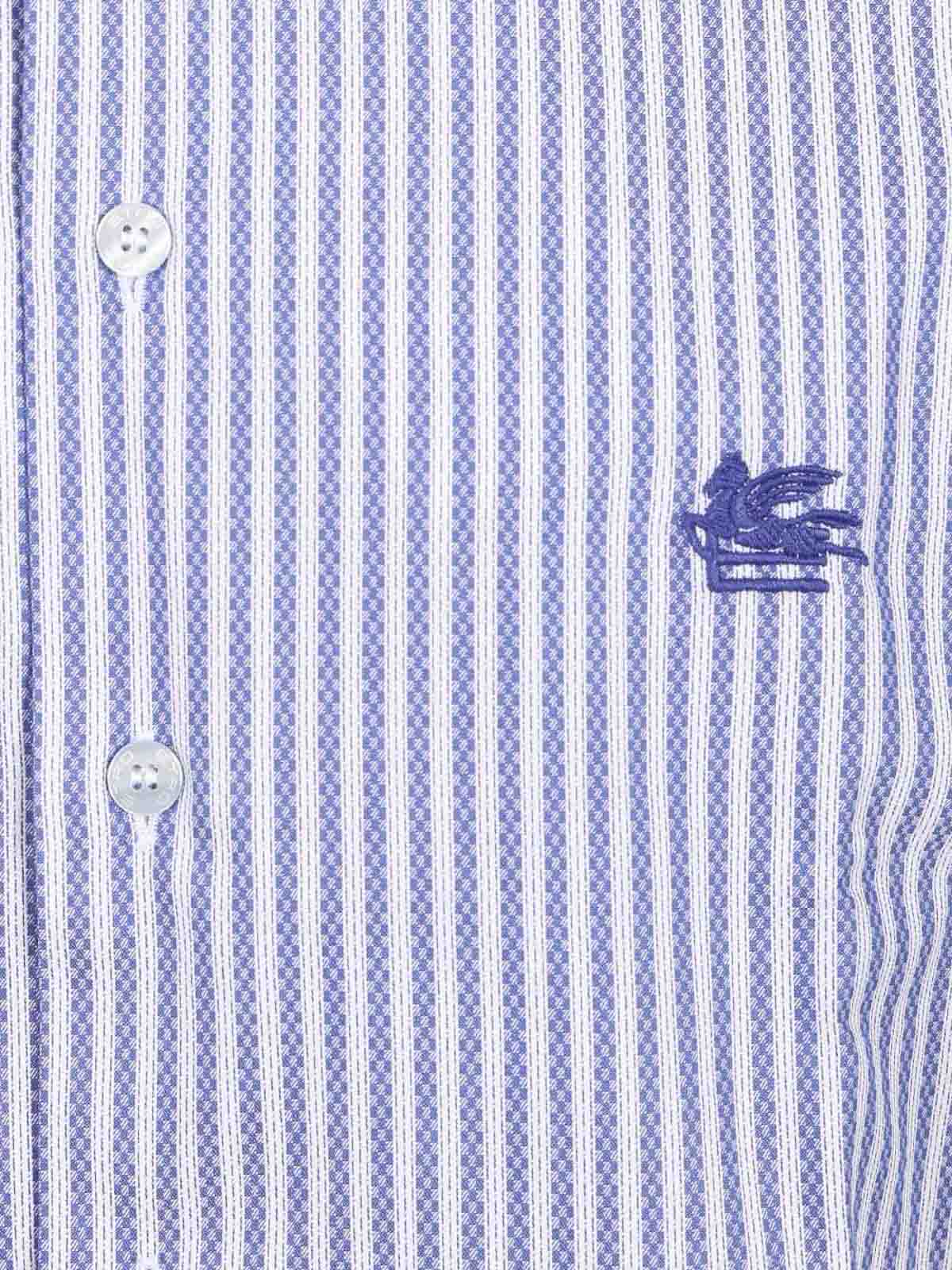 Camicia in popeline rigato con bottoni in madreperla e logo ricamato