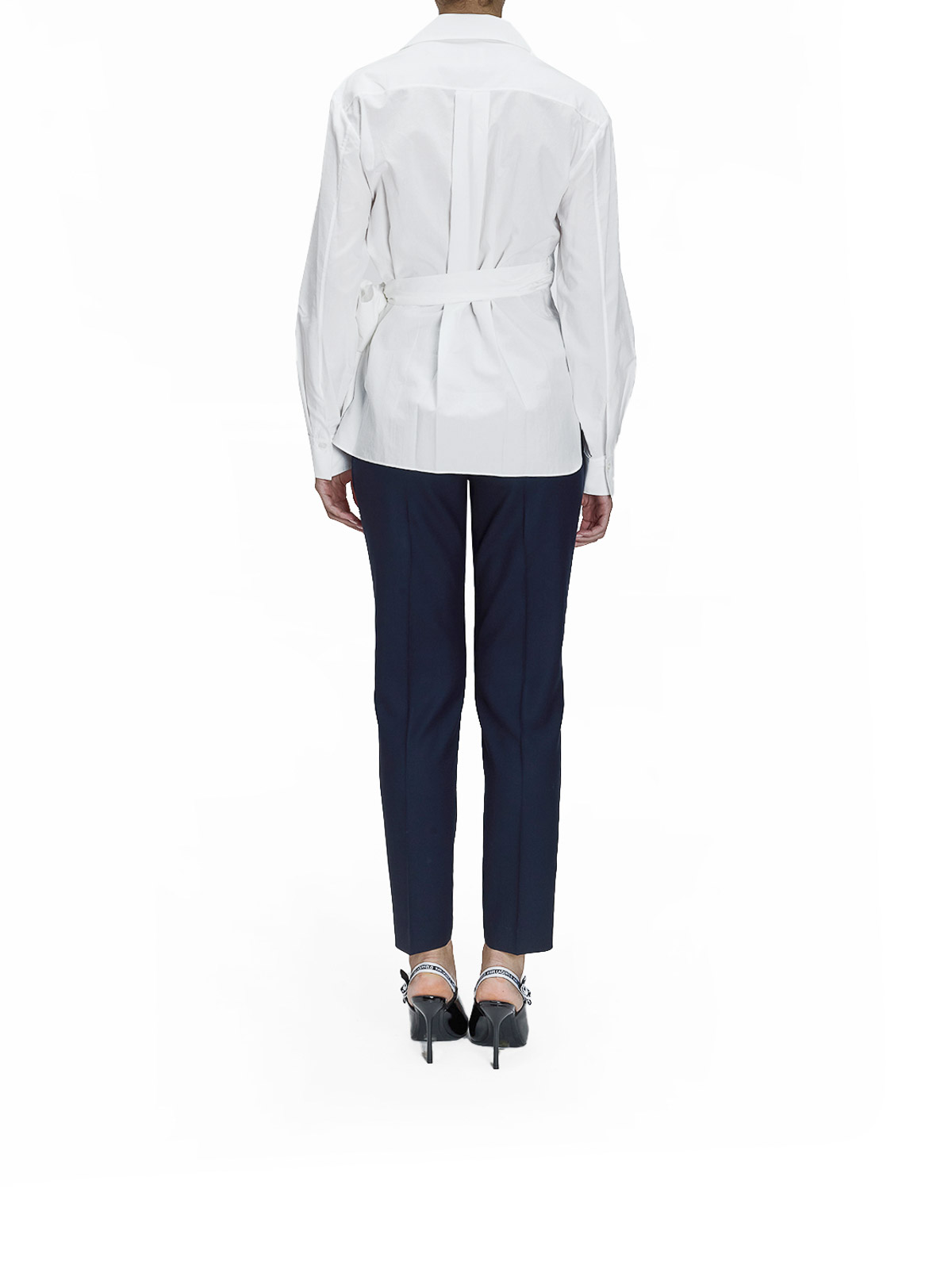 Camicia incrocio in bianco. camicia in misto cotone di paul smith conchisura a, portafoglio e dettaglio annodato in vita. si presenta con orlo, incurvato e colletto classico. colletto classico, chiusura a portafoglio, orlo incurvato, dettaglio annodato in vita.